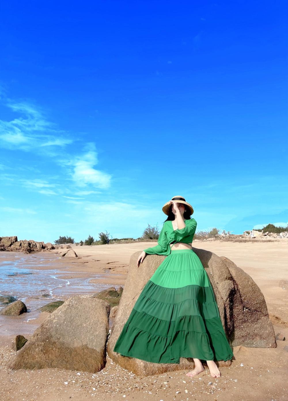 Đầm mặc đi biển Tầng Thắt Ngực Xanh Lính DM810XL cho cô nàng Song Ngư