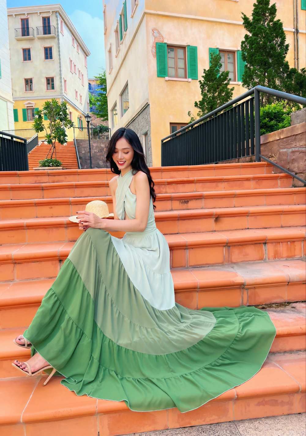 Đầm mặc đi biển Yếm Tầng Xanh Ánh Tằm DM808X cho cô nàng cung Xử Nữ