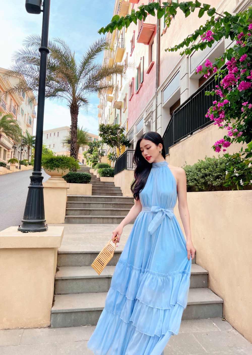 Đầm mặc đi biển Set Tầng Thắt Ngực Xanh DM811 cho cô gái cung Thiên Bình