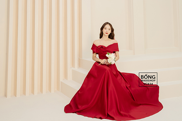 Mua ngay: Váy cưới phi nhật xoắn chân xòe đỏ VC834
