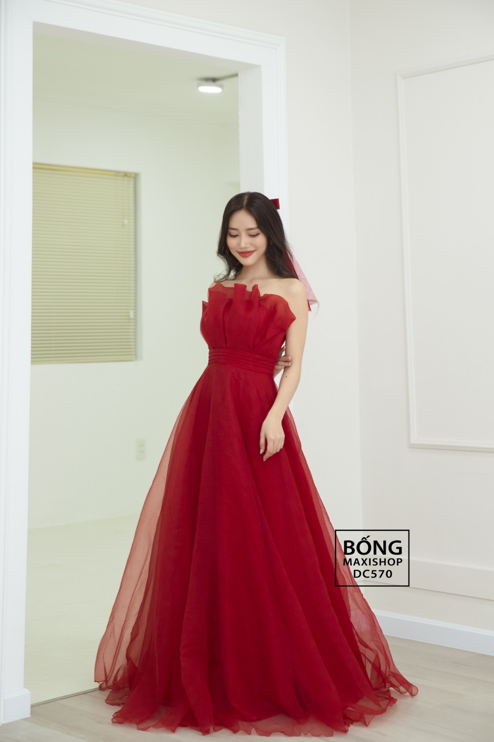 Mua ngay: Váy cưới xốp đỏ cup xếp li DC570D