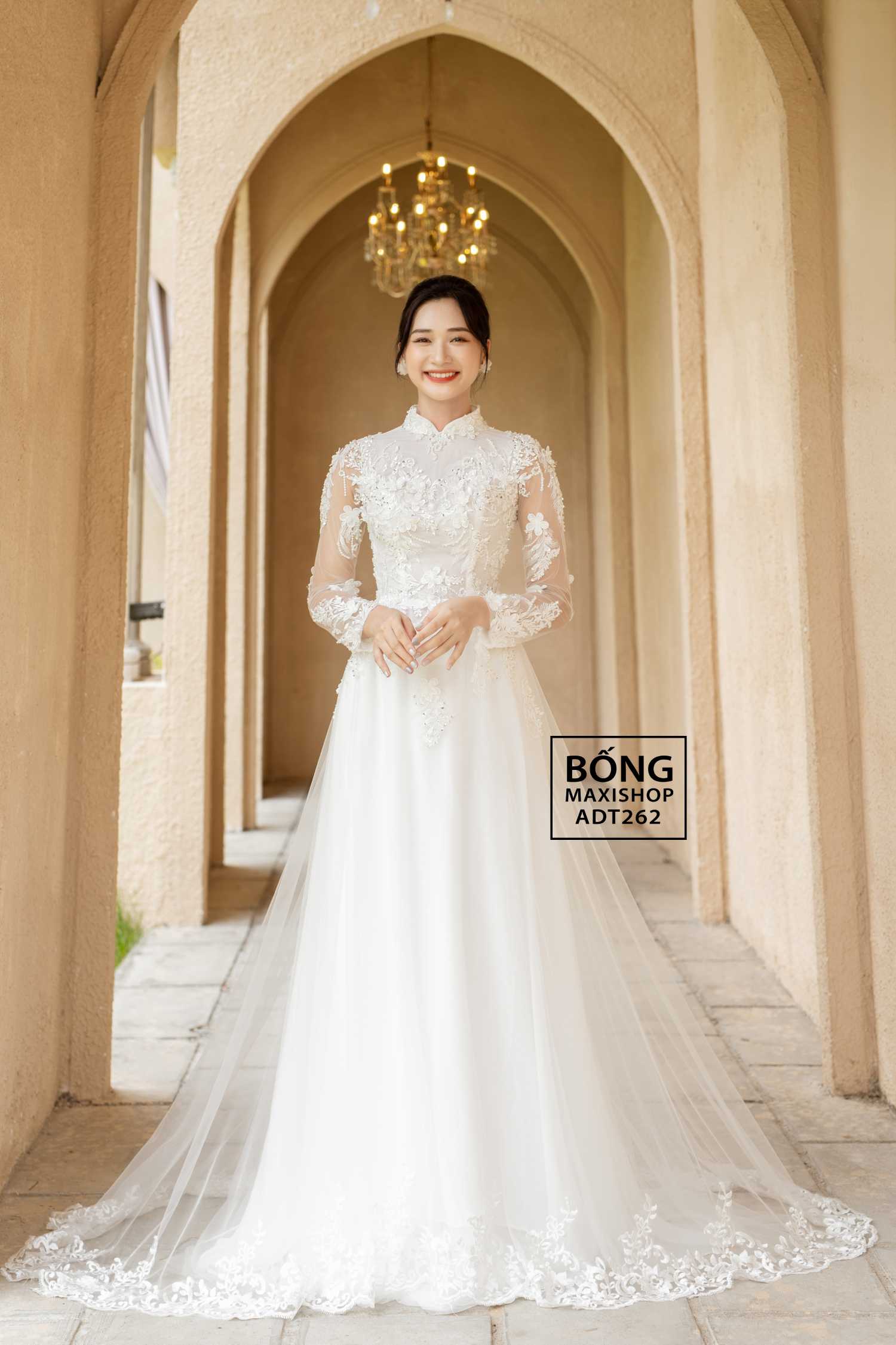 Mua ngay: Áo dài váy cô dâu đăng ren ADT262
