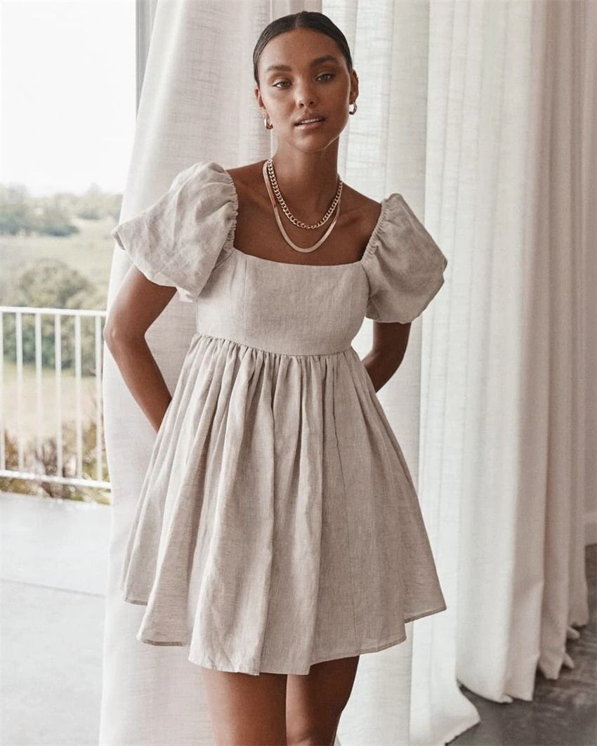 Váy trắng đi biển 2022 Babydoll dáng ngắn năng động