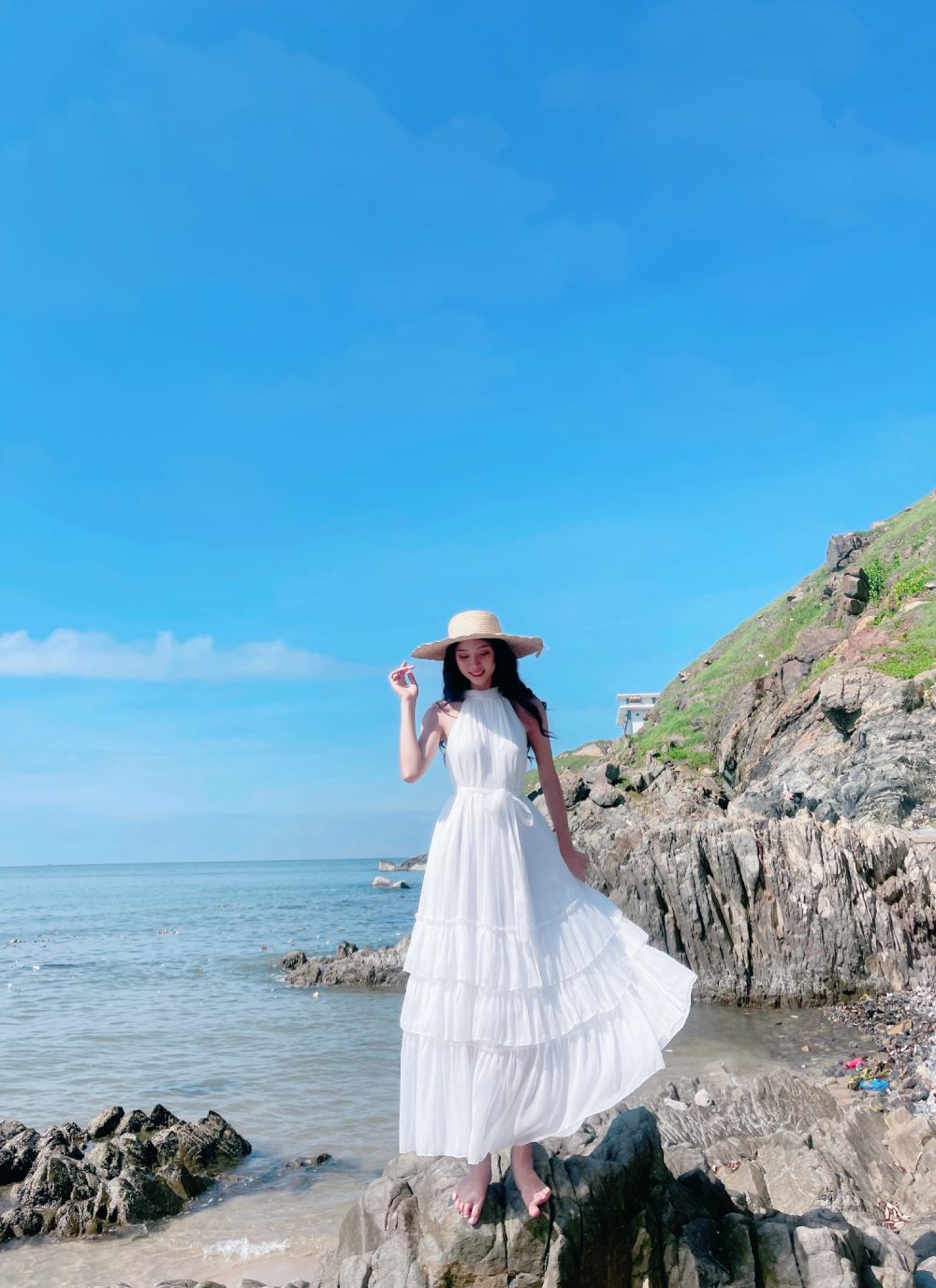Mua ngay: Đầm Maxi Yếm Tầng Trắng Ánh Tằm DT808