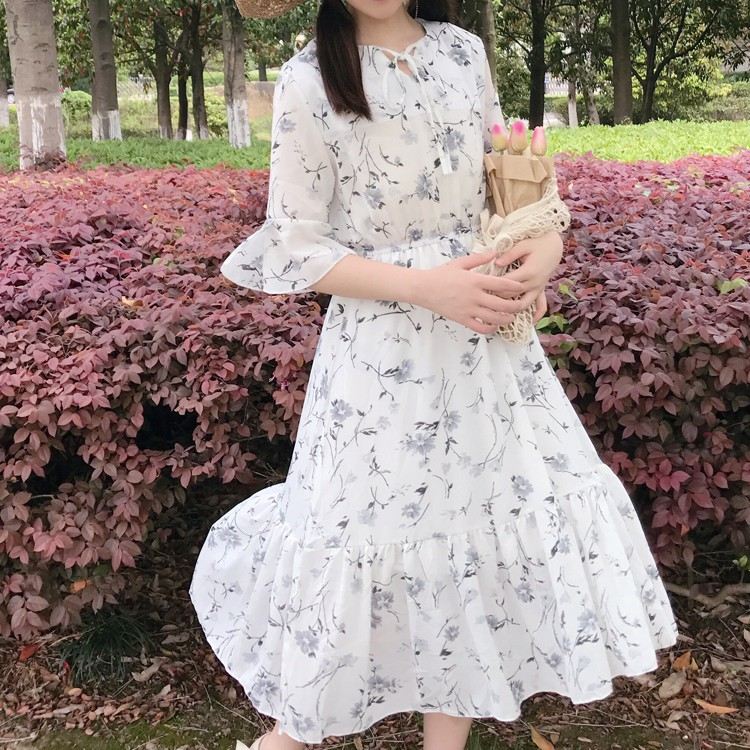 Váy trắng bánh bèo hoa nhí