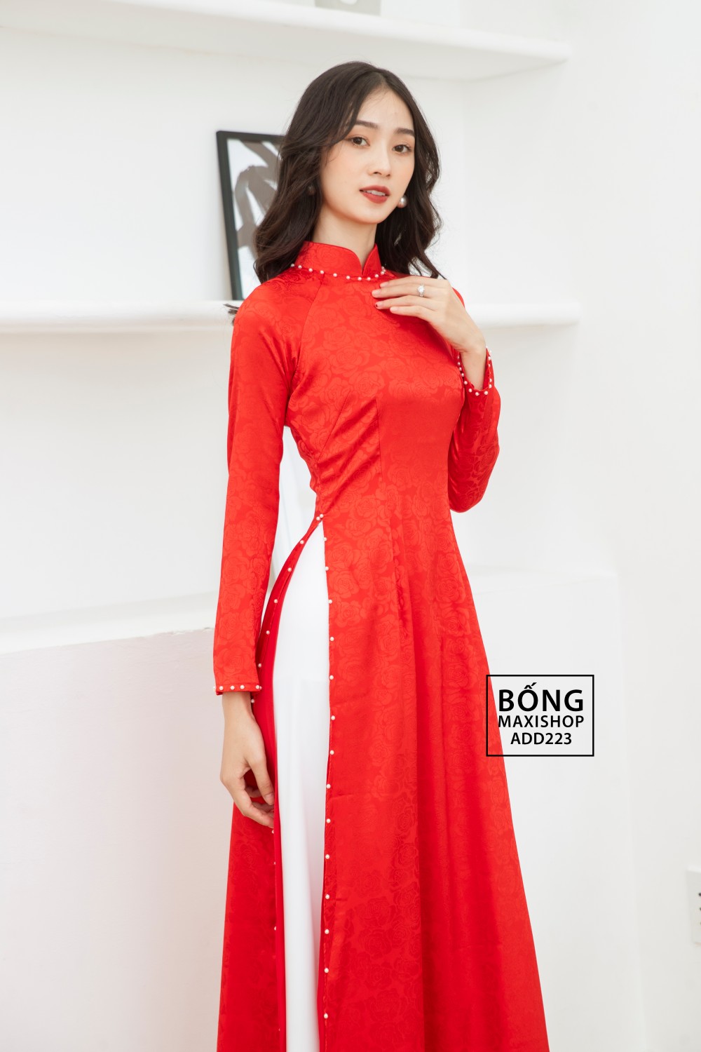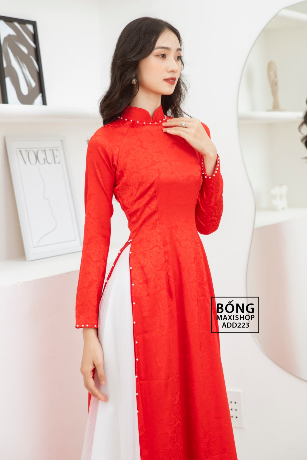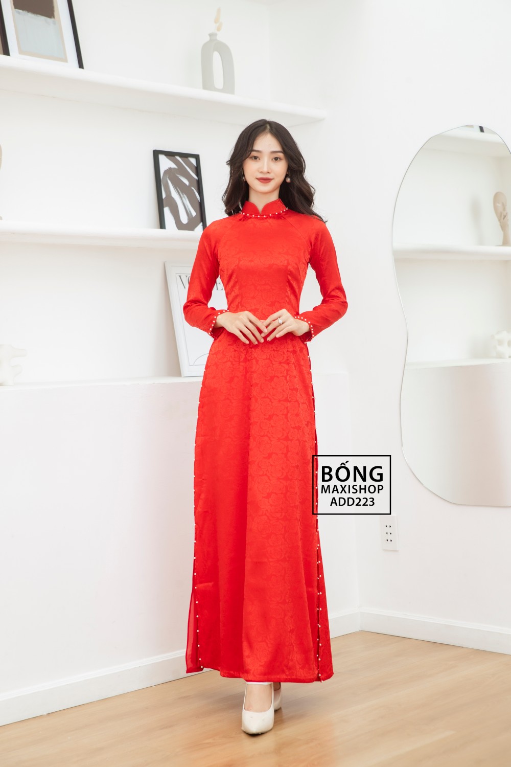 Áo dài cô dâu gấm đỏ viền ngọc 4 tà nền hoa cúc ADD223 là một lựa chọn hoàn hảo cho các cô nàng yêu thích phong cách thiết kế đơn giản, mang đậm nét truyền thống. Chiếc áo dài được làm từ vải gấm mềm mại cùng những đường may tỉ mỉ giúp tôn lên vẻ đẹp hình thể của người con gái một cách tinh tế. Họa tiết hoa cúc trên nền vải gấm hòa cùng sắc đỏ thắm giúp mang lại nét đẹp đằm thắm, dịu dàng của người phụ nữ xưa. Ngoài ra, viền áo còn được đính ngọc một cách khéo léo và chi tiết 4 tà áo sẽ giúp tăng thêm sự thướt tha, duyên dáng trên mỗi bước đi của nàng. Hãy đến ngay Bống Maxishop để sở hữu Áo dài cô dâu gấm đỏ viền ngọc 4 tà nền hoa cúc ADD223 nhé.