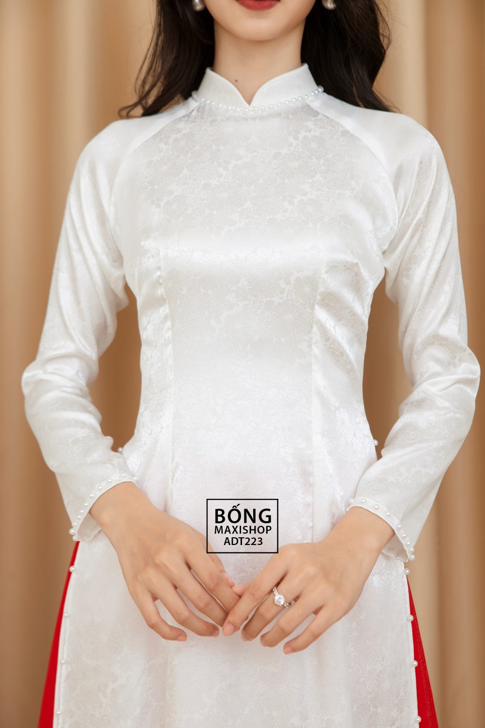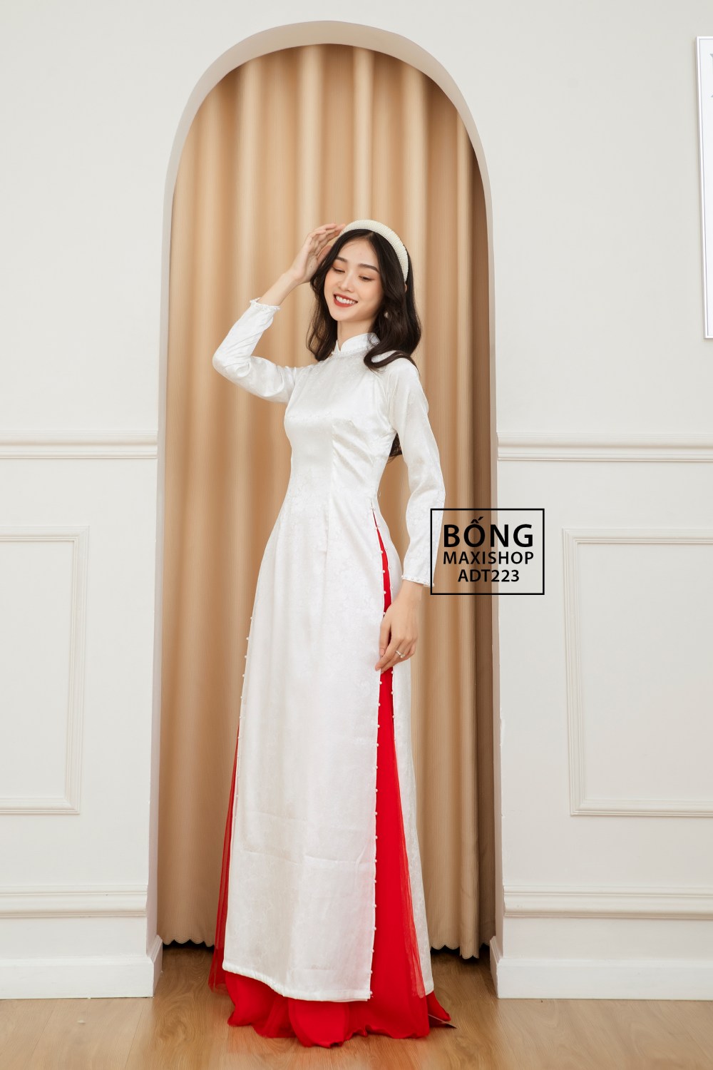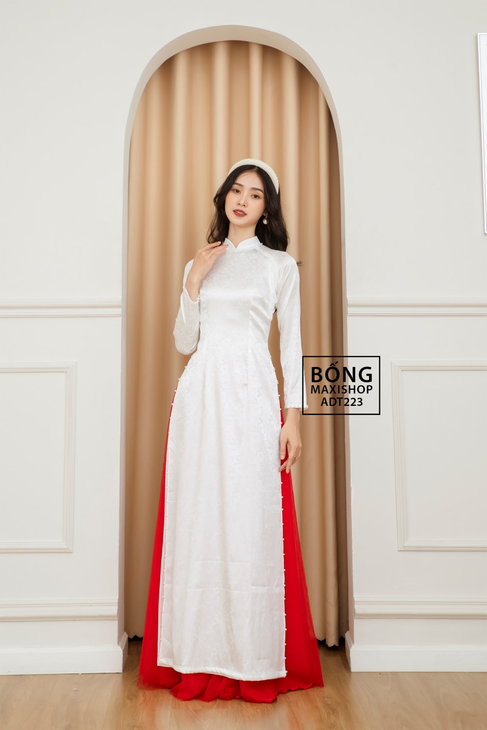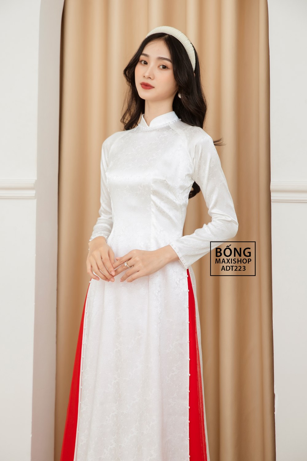 Áo dài cô dâu gấm trắng viền ngọc 4 tà nền hoa cúc ADT223 sẽ khiến các cô gái xao xuyến bởi vẻ đẹp tinh khôi, trong trẻo. Chiếc áo dài được làm từ chất liệu vải gấm cao cấp kết hợp cùng những đường may chắc chắn vừa mang lại cảm giác thoải mái, bền bỉ vừa giúp tôn vóc dáng của người con gái một cách tinh tế. Họa tiết hoa cúc mang lại hơi thở truyền thống nhưng vẫn giữ được sự trẻ trung, tươi sáng nhờ vào sắc trắng tinh khôi của vải gấm. Để tăng thêm vẻ sang trọng, chiếc áo dài được điểm thêm các viên ngọc trai ở viền áo. Hãy liên hệ ngay với Bống Maxishop để được tư vấn chi tiết và sở hữu ngay Áo dài cô dâu gấm trắng viền ngọc 4 tà nền hoa cúc ADT223 nhé.