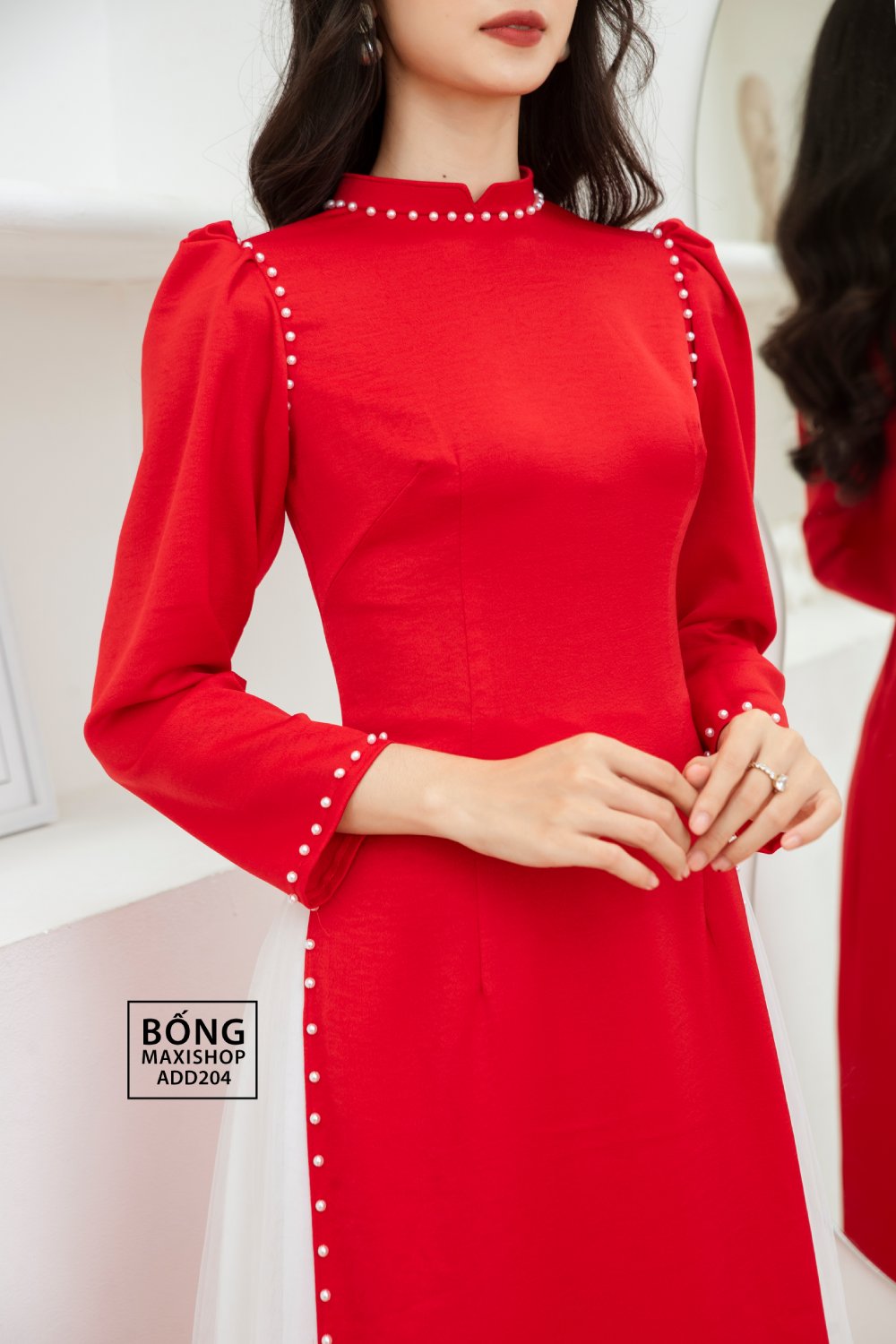 Áo dài cô dâu lụa viền đỏ ngọc ADD204 sẽ mang lại vẻ đẹp duyên dáng và sang trọng cho các cô gái trong ngày trọng đại của mình. Chiếc áo được làm từ vải lụa mềm mại, không chỉ đem lại cảm giác thoải mái, thoáng mát khi mặc mà còn tôn lên đường cong của nàng một cách tinh tế. Phần tay áo được thiết kế bồng nhẹ kết hợp với các hạt ngọc trai trắng được khéo léo đính dọc viền áo làm tăng thêm sự dịu dàng, thướt tha và rực rỡ. Chiếc áo dài không chỉ tôn lên nét đẹp truyền thống mà còn mang ý nghĩa cầu chúc may mắn và cuộc sống ấm no, sung túc. Hãy liên hệ ngay Bống Maxi để được tư vấn chi tiết và sở hữu ngay Áo dài cô dâu lụa viền đỏ ngọc ADD204.
