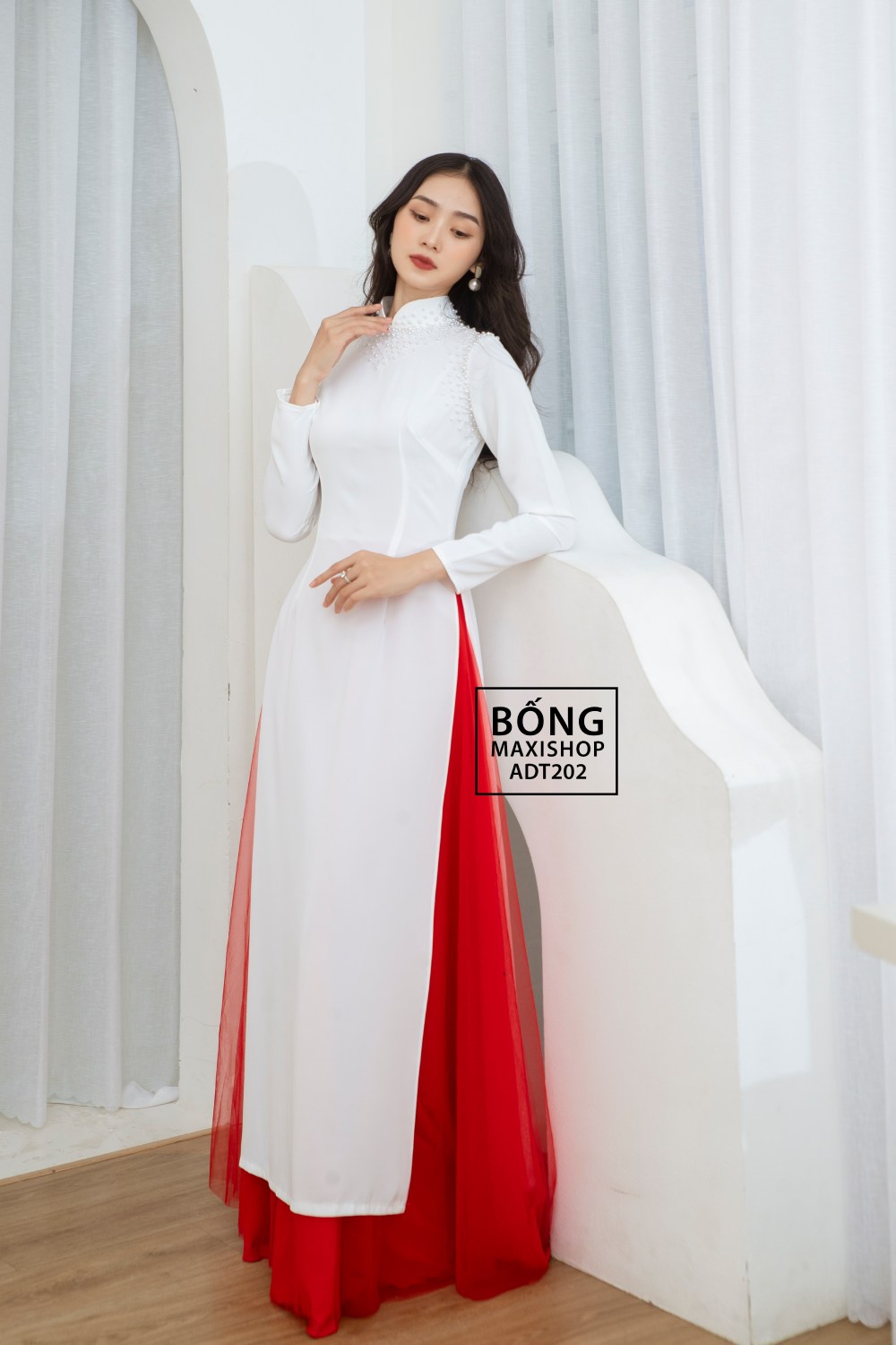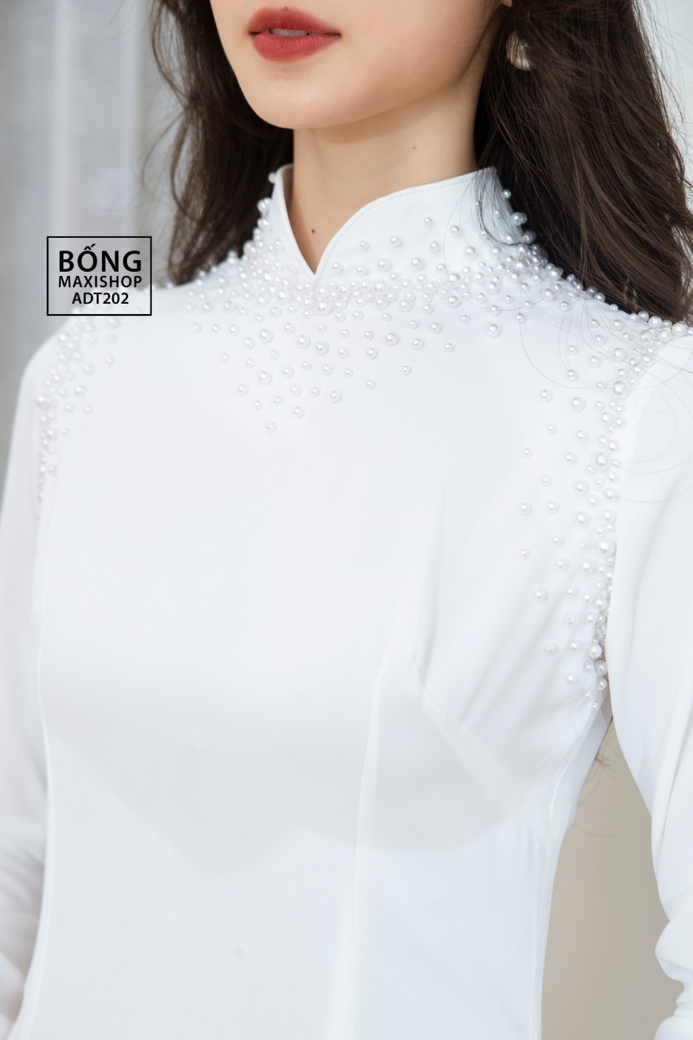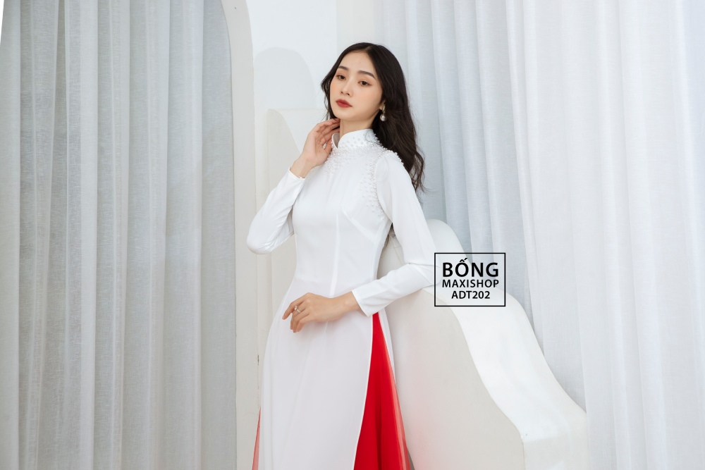 Áo dài cô dâu lụa trắng tủa ngọc ADT202 sở hữu thiết kế đơn giản nhưng không kém phần thu hút. Chiếc áo dài cô dâu sở hữu các đường may khéo léo cùng chất liệu vải lụa mềm mịn giúp ôm trọn và tôn lên vóc dáng của người con gái một cách tinh tế nhất nhưng vẫn giữ được cảm giác thoải mái khi mặc. Phần cổ và vai áo được điểm các viên ngọc một cách tỉ mỉ, tạo hiệu ứng tủa rộng độc đáo và sang trọng. Màu trắng tinh khôi của chiếc áo dài sẽ mang lại một nét đẹp thuần khiết và dịu dàng cho các quý cô. Để được tư vấn chi tiết và sở hữu Áo dài cô dâu lụa trắng tủa ngọc ADT202, hãy liên hệ ngay với Bống Maxishop nhé.