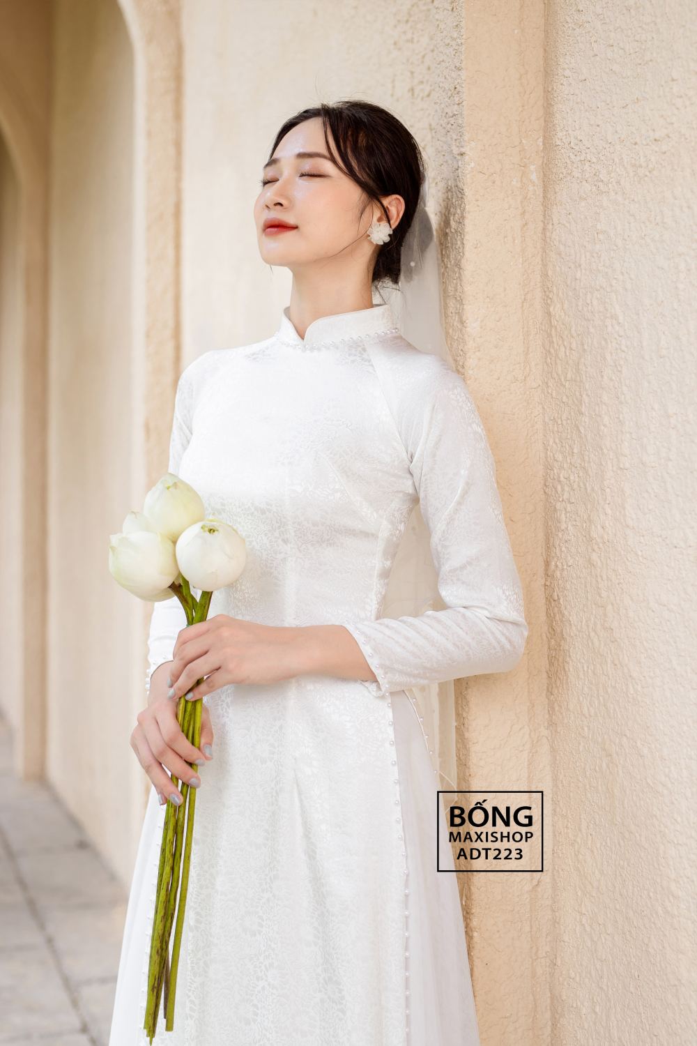 Mua ngay: Áo dài cô dâu màu trắng lụa tủa ngọc ADT202