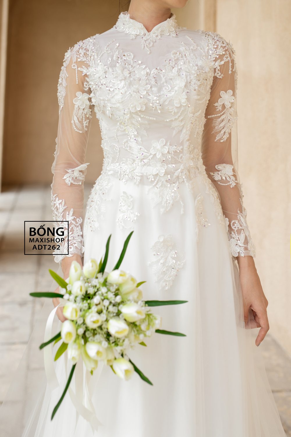 Áo dài váy cô dâu đăng ren ADT262 là sự kết hợp hoàn hảo giữa nét đẹp truyền thống và hiện đại. Chiếc áo dài sở hữu phần trên thiết kế cầu kỳ với vải ren đính hoa và kết cườm tạo nên một vẻ đẹp thật nữ tính và sang trọng. Tay áo được thiết kế xuyên thấu mang lại sự quyến rũ vừa phải. Chiếc áo có màu sắc trắng tinh khôi mang lại cho cô dâu một vẻ đẹp thật trong trẻo và thuần khiết trong ngày trọng đại của mình. Phần viền dưới của váy cũng được phối ren một cách tỉ mỉ kết hợp với thiết kế váy dài chạm đất giúp toát lên vẻ thướt tha và duyên dáng cho nàng. Hãy liên hệ ngay với Bống maxi để được tư vấn chi tiết và sở hữu ngay Áo dài váy cô dâu đăng ren ADT262 nhé.