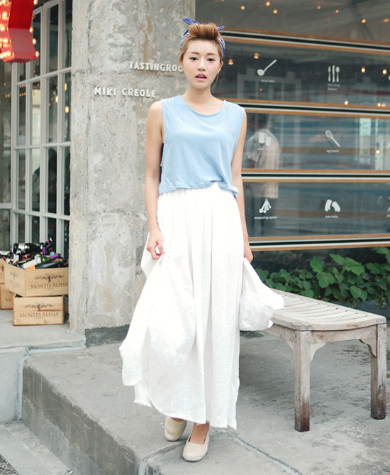 Chiếc chân váy maxi vẫn tiếp tục nổi cộm từ đầu năm đến năm nay . Nhờ sự duyên dáng và mềm mại , bạn còn có thể kết hợp hầu hết các loại áo thun . Chiếc áo thun đơn màu ôm hay chiếc áo thun freesize đều phug hợp . Áo thun và chân váy là hai món đồ thuộc hai phong cách khác nhau. Nhưng khi mix-match chúng lại và đi với giày bata mang đến sự trẻ trung vừa đáng yêu cho phái đẹp.