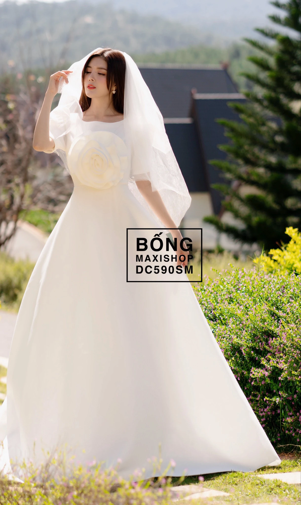 - Váy cưới DC590: Ai nói tối giản là phải nhàm chán? DC590 sẽ chứng minh điều ngược lại! Trên nền váy trơn tinh tế, một bông hoa cuốn 3D khổng lồ bỗng nở rộ ngay trên ngực áo, biến cô dâu thành một tác phẩm nghệ thuật di động. Đây là lựa chọn hoàn hảo cho cô dâu có gu, muốn 'chơi lớn' một cách đầy nghệ thuật.