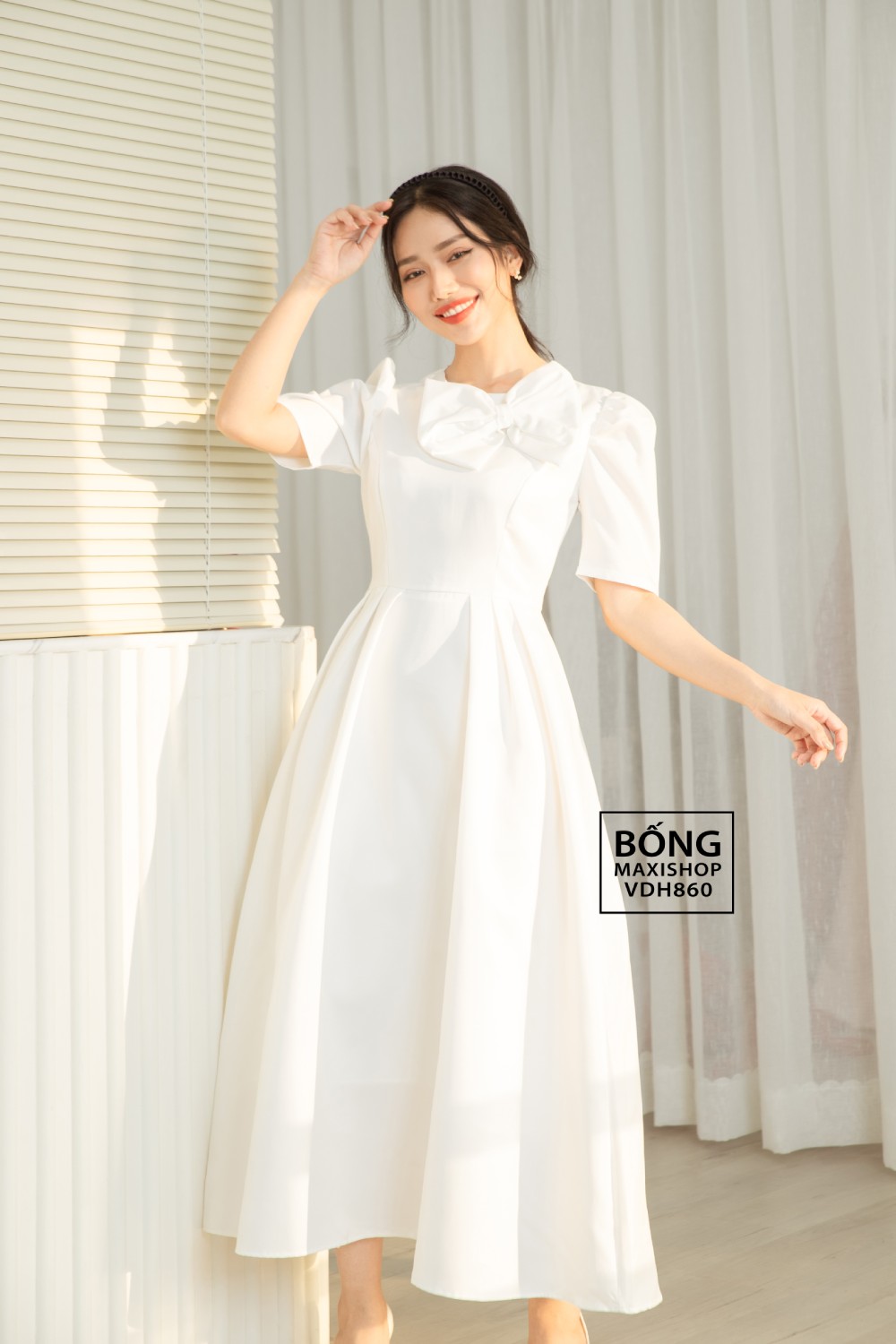 - Váy dạ hội VDH860: Nếu nàng là một cô dâu 'kẹo ngọt' chính hiệu, VDH860 chính là sinh ra để dành cho bạn. Điểm nhấn 'ăn tiền' nhất chính là chiếc nơ to bản được xếp nếp đầy tinh tế ngay cổ áo, mang lại một vẻ ngoài vừa điệu đà, vừa trẻ trung khó cưỡng.