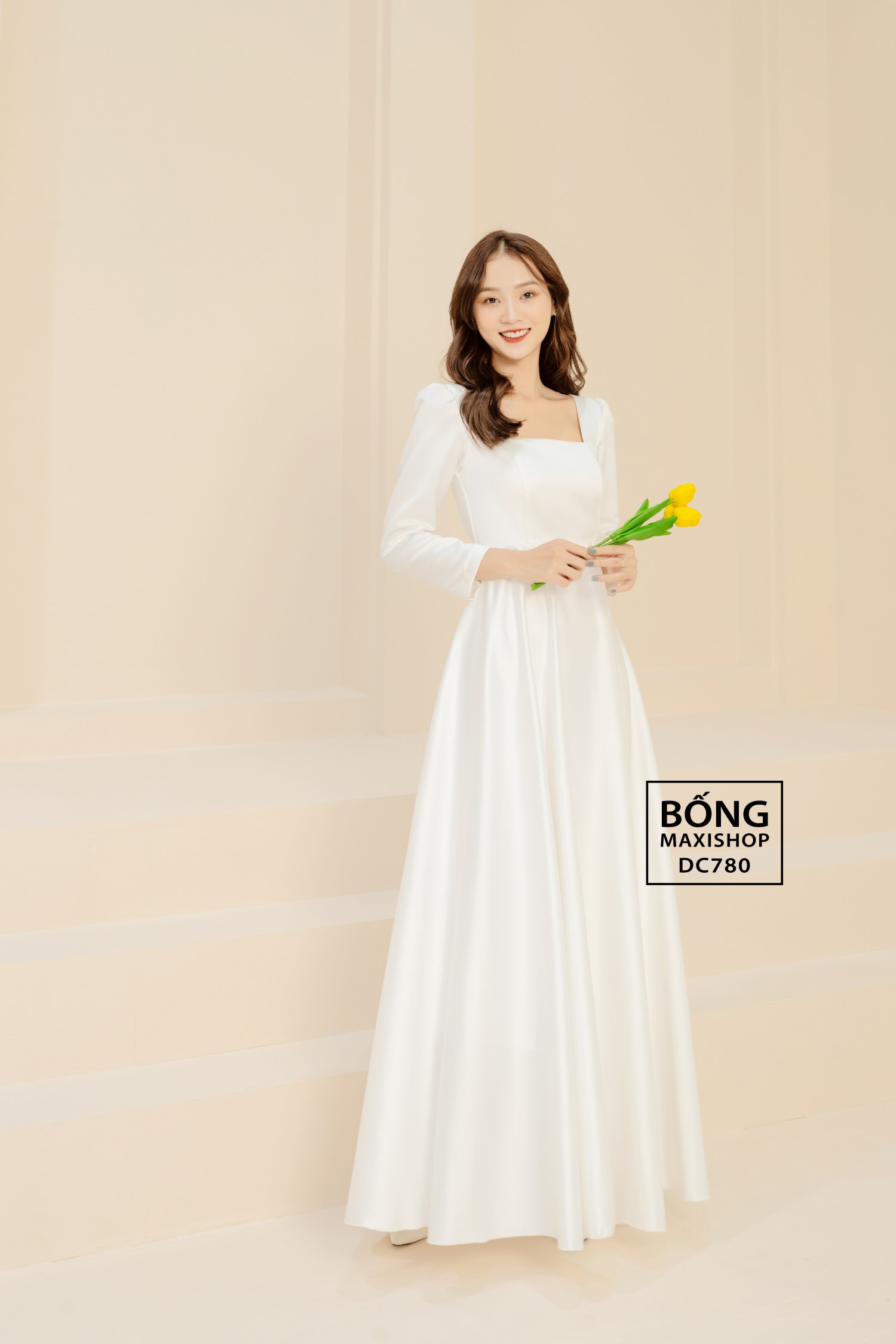- Váy cưới DC780: Một mẫu váy mang vẻ đẹp tối giản tuyệt đối. Sức hút đến từ sự tinh giản trong từng đường nét, tôn vinh trọn vẹn vẻ đẹp tự nhiên của cô dâu.