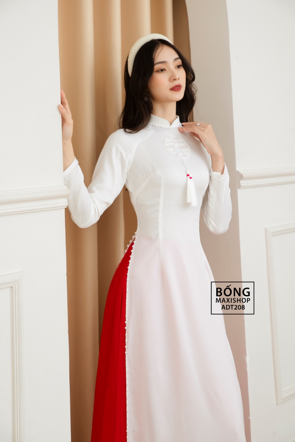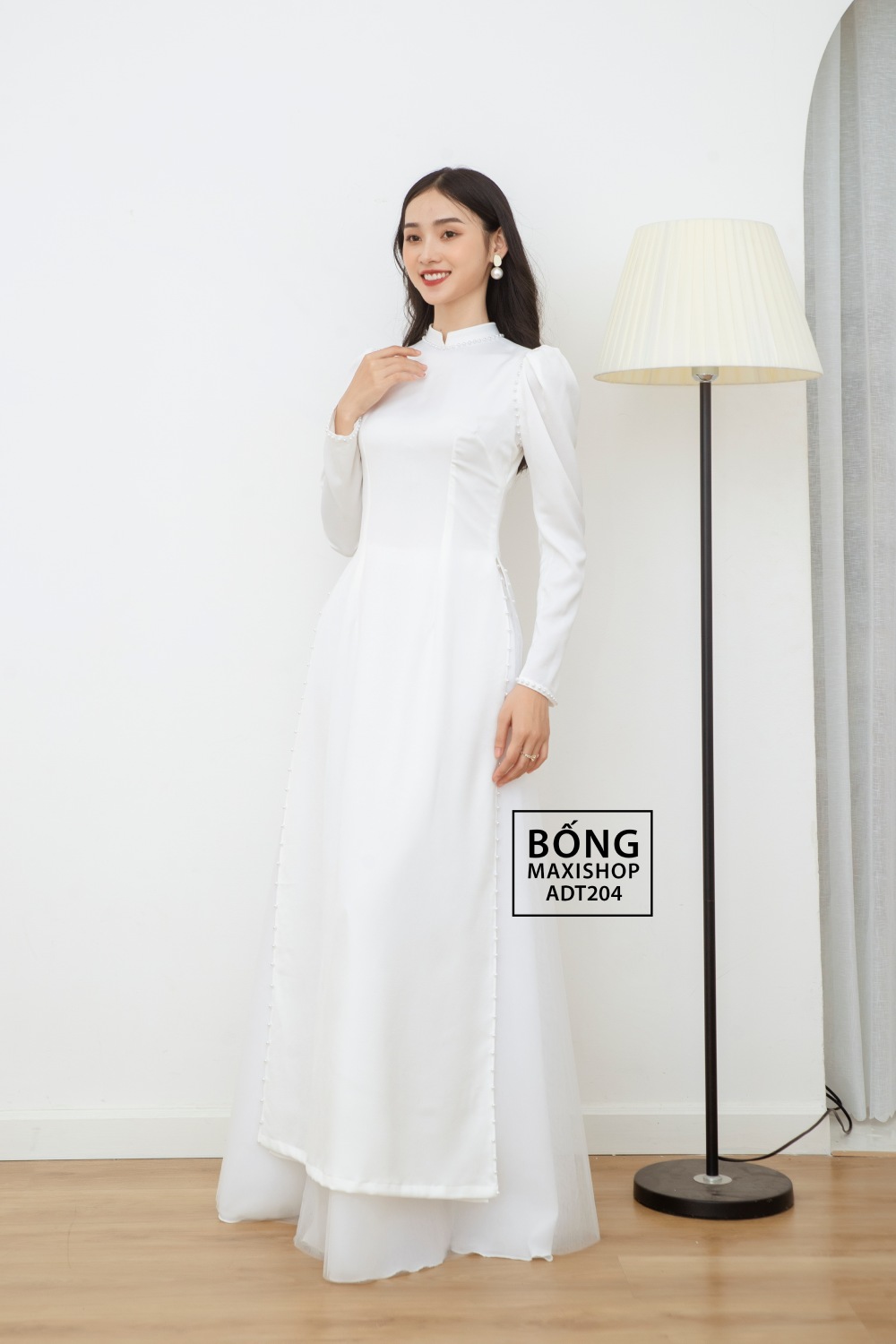 Mua ngay: Áo dài cô dâu lụa trắng kết hỷ ADT208