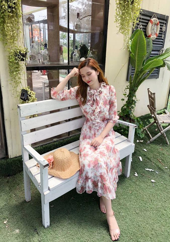 Bạn có thể mặc chiếc đầm maxi hoa bi hay hoa bay nhẹ nhàng trên nền vải voan, chiết thu ngang eo hoạc dây thắt lưng bản nhỏ , để có thể tạo nét duyên dáng , nữ tính hơn .