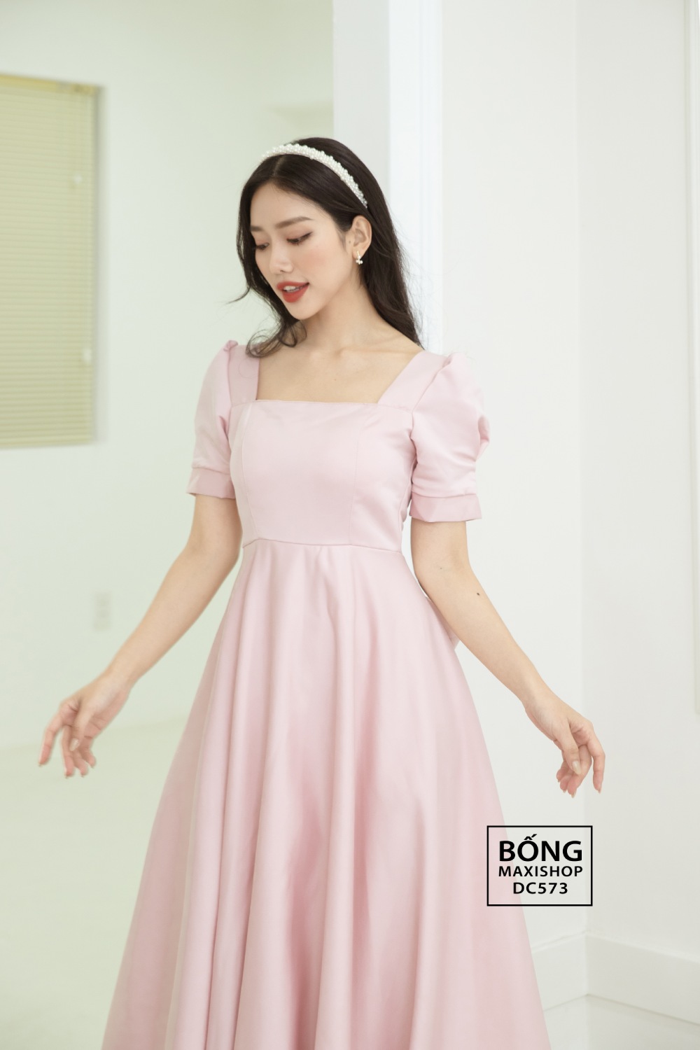 Mua ngay: Váy cưới phi nhật hồng cổ vuông nơ lưng DC573