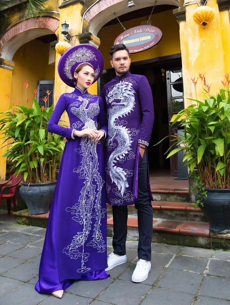 Bật mí cho các cô dâu yêu màu tím mộng mơ là màu tím Veri Peri (sự pha trộn giữa màu xanh mang sắc tím gợi nhắc đến hoa oải hương) là màu được Viện Pantone đề xuất làm màu chủ đạo của năm 2022. Các mẫu áo dài cưới cô dâu 2022 mang sắc tím 2022 sẽ khiến các nàng ngạc nhiên vì độ tôn da ngăm của màu sắc này. Bất kì loại vải nào có pha màu tím từ tím nhạt đến tím than, tím sẫm, tím huế đều có thể khiến da các cô dâu trắng thêm một vài tông. Màu tím cũng là tông màu mang lại cảm giác hơi ma mị và bí ẩn, do đó nếu các cô dâu muốn làm mới bộ áo dài cưới đẹp 2022 của mình thì có thể chọn màu tím làm màu chủ đạo đặc biệt là màu Veri Peri mới lạ.