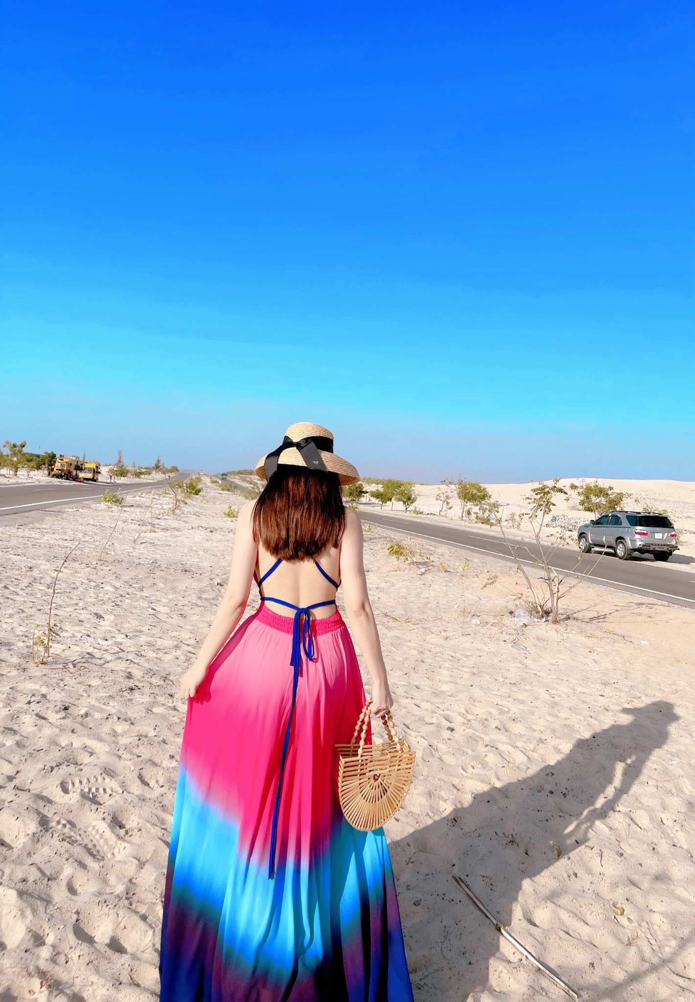 Đầm Maxi Dây Dài Loang Hồng Xanh Tím DM132