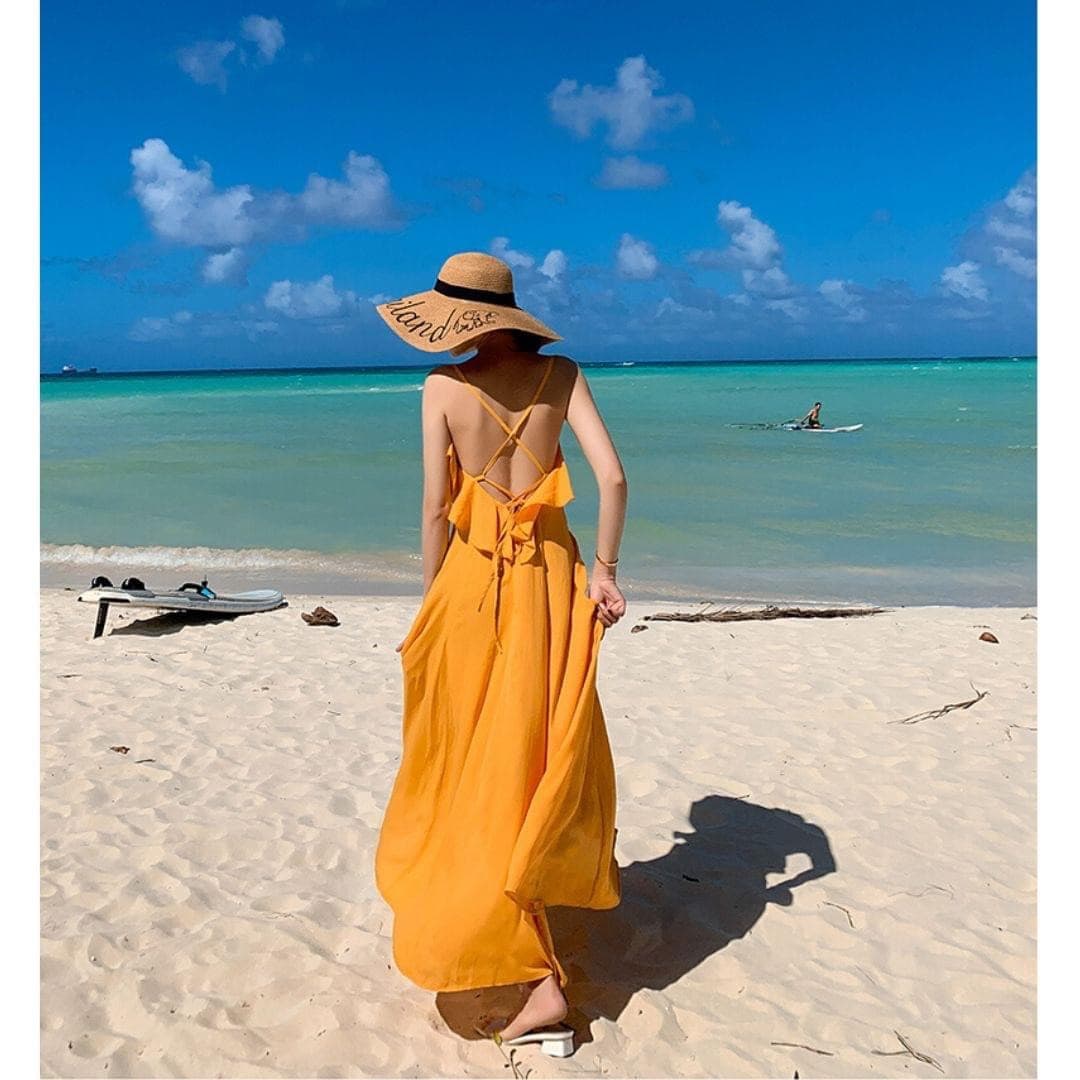 Đầm Maxi Vàng Dây Bèo Ngực DM745
