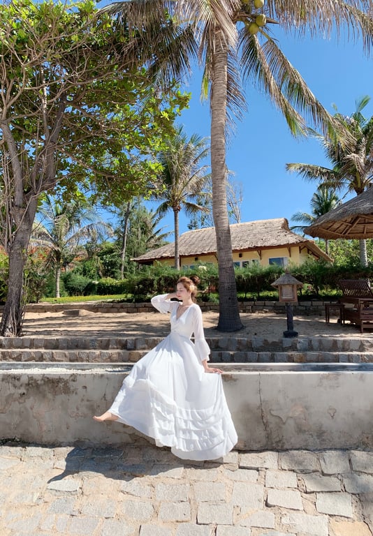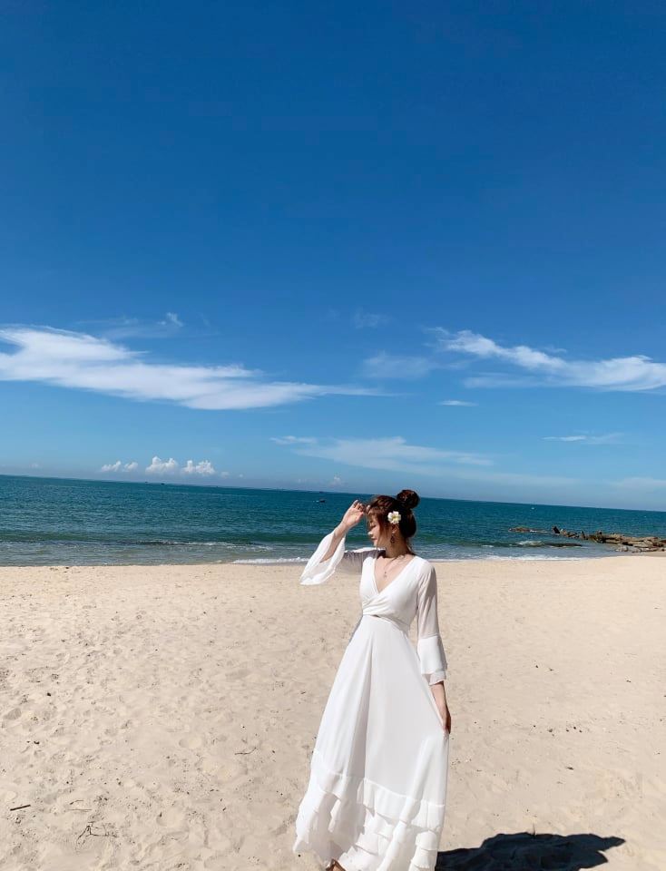 Đầm Maxi Sét Cột Ngực Trắng DT756