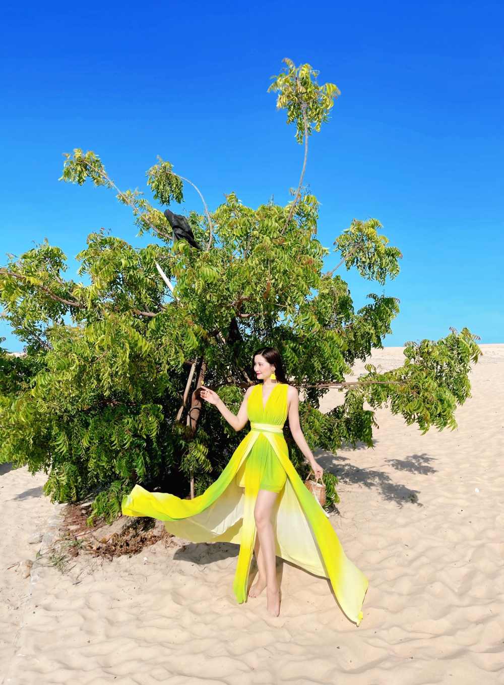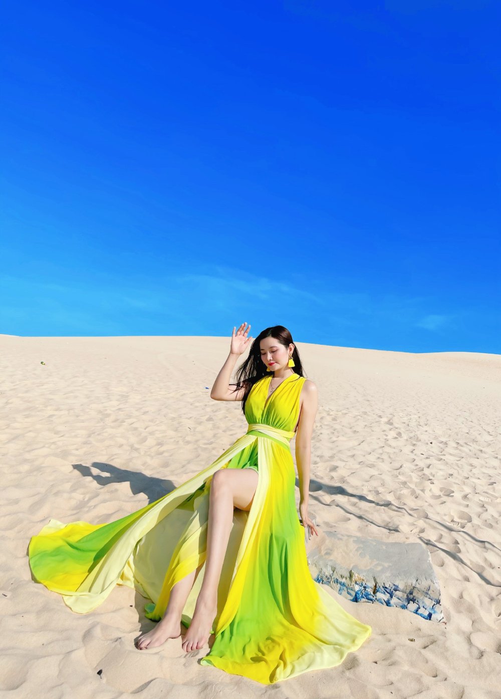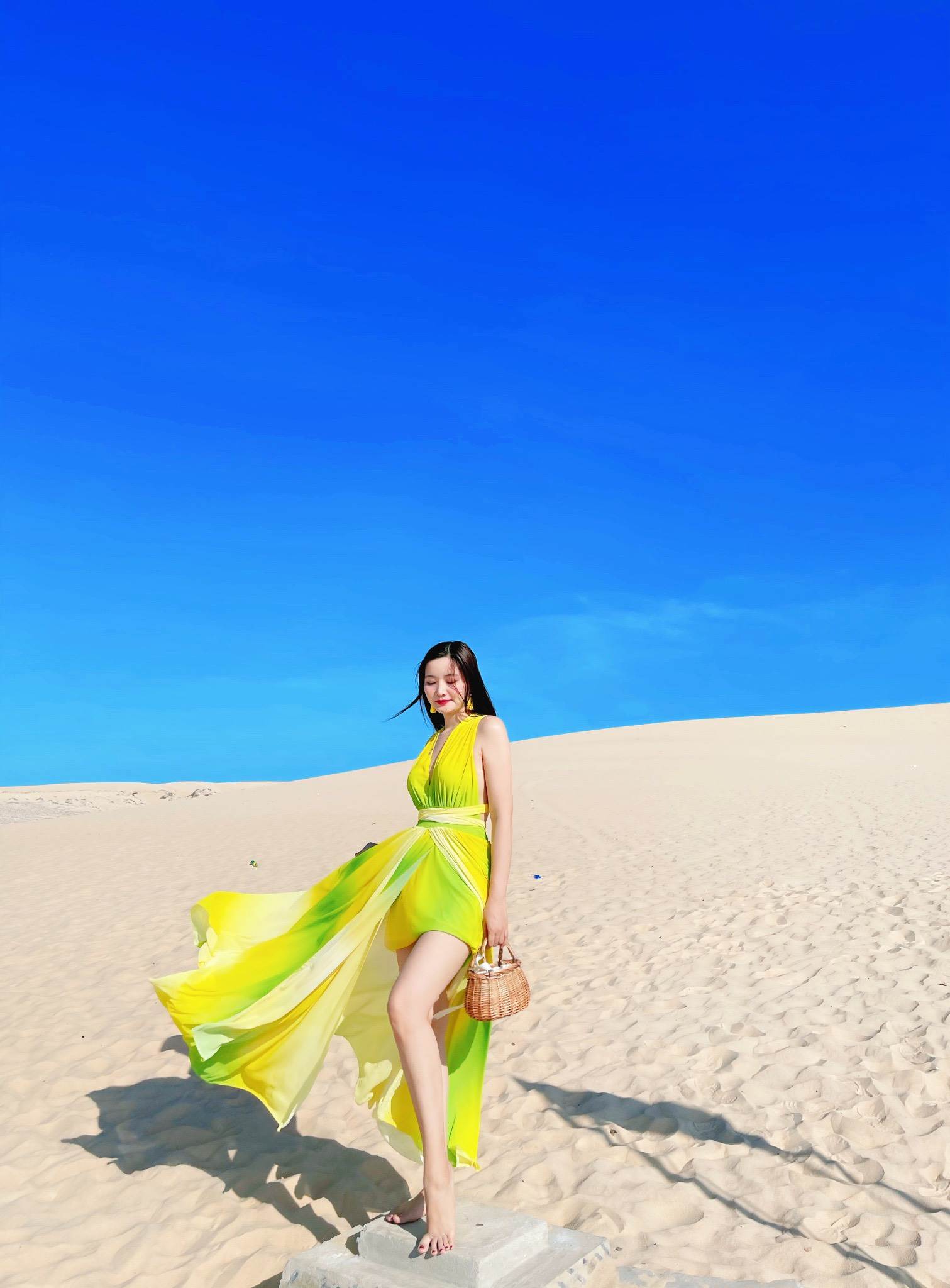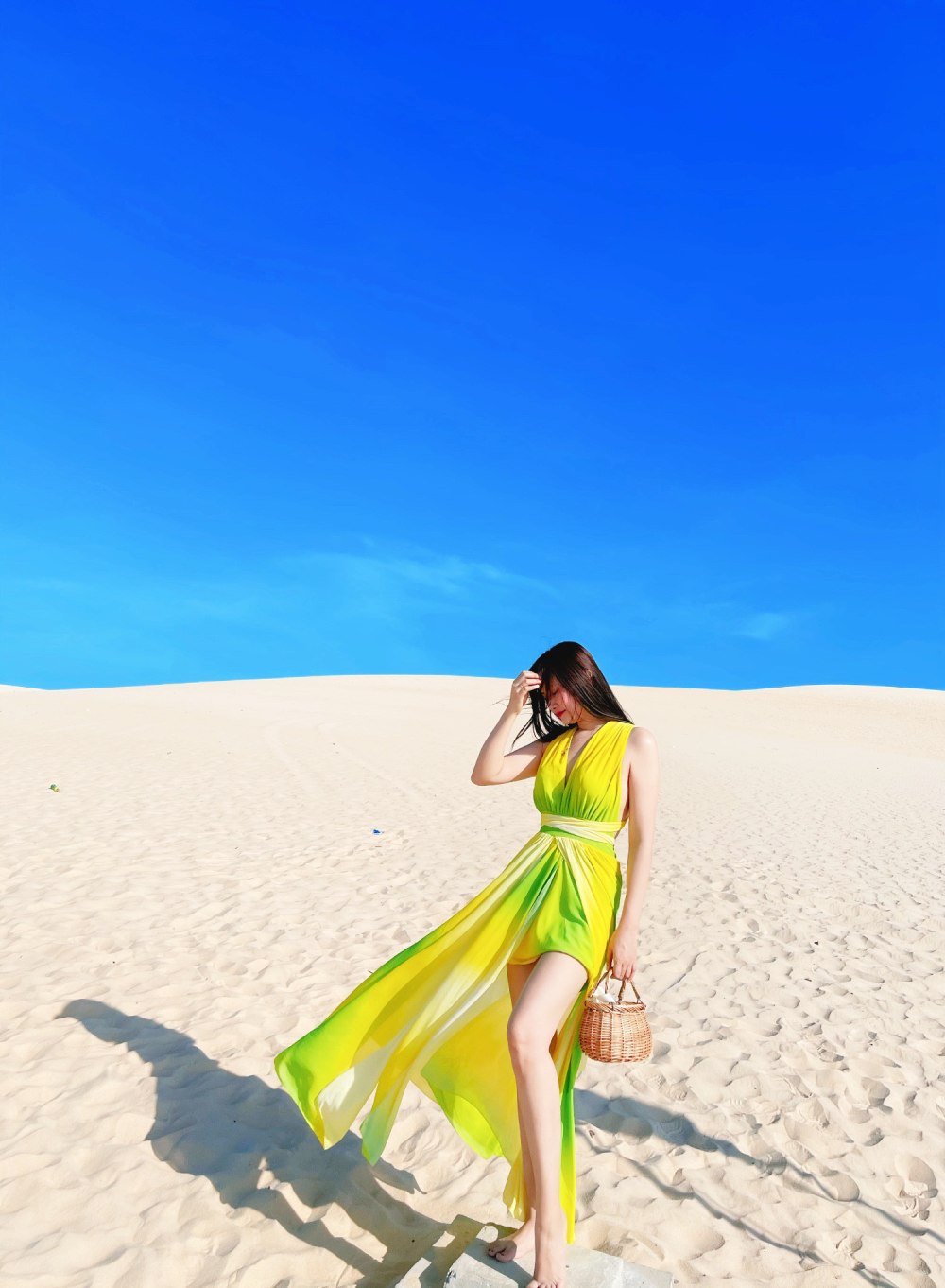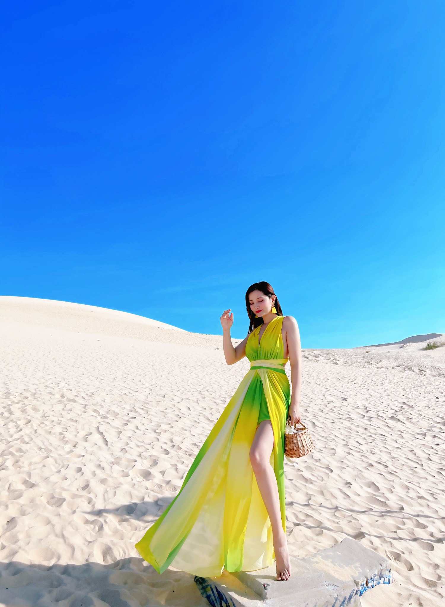 Đầm Maxi Mix Màu Xanh Vàng DM748 mang vẻ đẹp độc đáo chắc chắn sẽ khiến nhiều cô nàng ấn tượng. Chiếc đầm maxi sở hữu cổ V xẻ sâu cùng dây đai thắt ở eo giúp tôn lên vóc dáng của các nàng. Chân váy dài rộng cùng chất liệu mỏng nhẹ mang lại hiệu ứng thướt tha, bồng bềnh mỗi khi bắt gặp các cơn gió. Để cho các cô gái thêm phần thoải mái và an toàn, bên trong của váy được may thêm một lớp lót dày dặn. Điểm nhấn của chiếc váy có lẽ nằm ở cách phối màu xanh và vàng vừa tạo nét lạ mắt, cuốn hút vừa mang lại cảm giác tươi mát cho cái nóng mùa hè. Hãy liên hệ với Bống Maxishop ngay để được tư vấn chi tiết nhé.