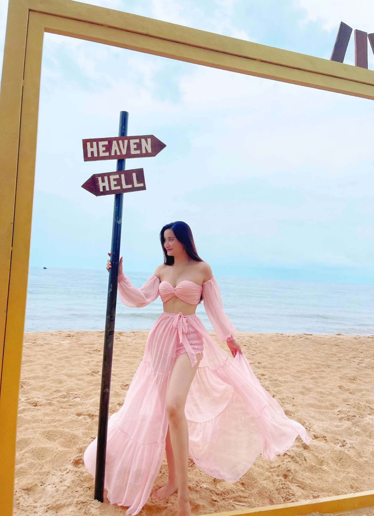 Đầm maxi đi biển cách điệu set màu hồng phấn