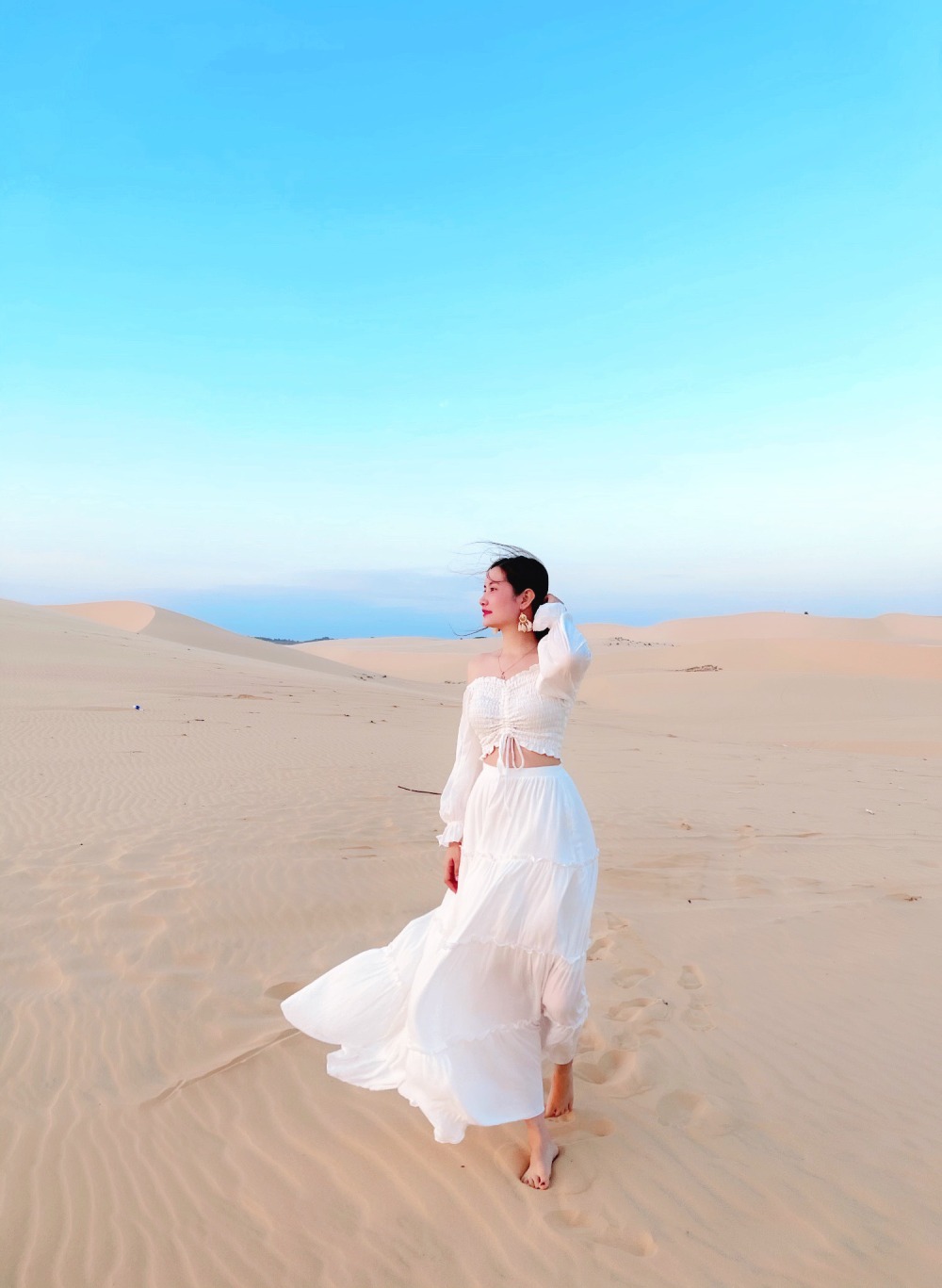 Đầm maxi đi biển cách điệu tách set áo dây rút ngực trắng