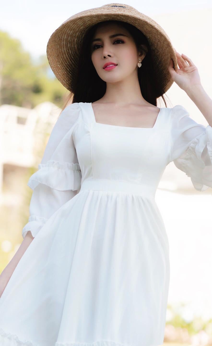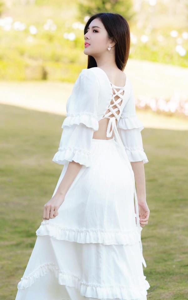 Đầm Maxi Trắng Bèo Tay Loe Đan Lưng DT334