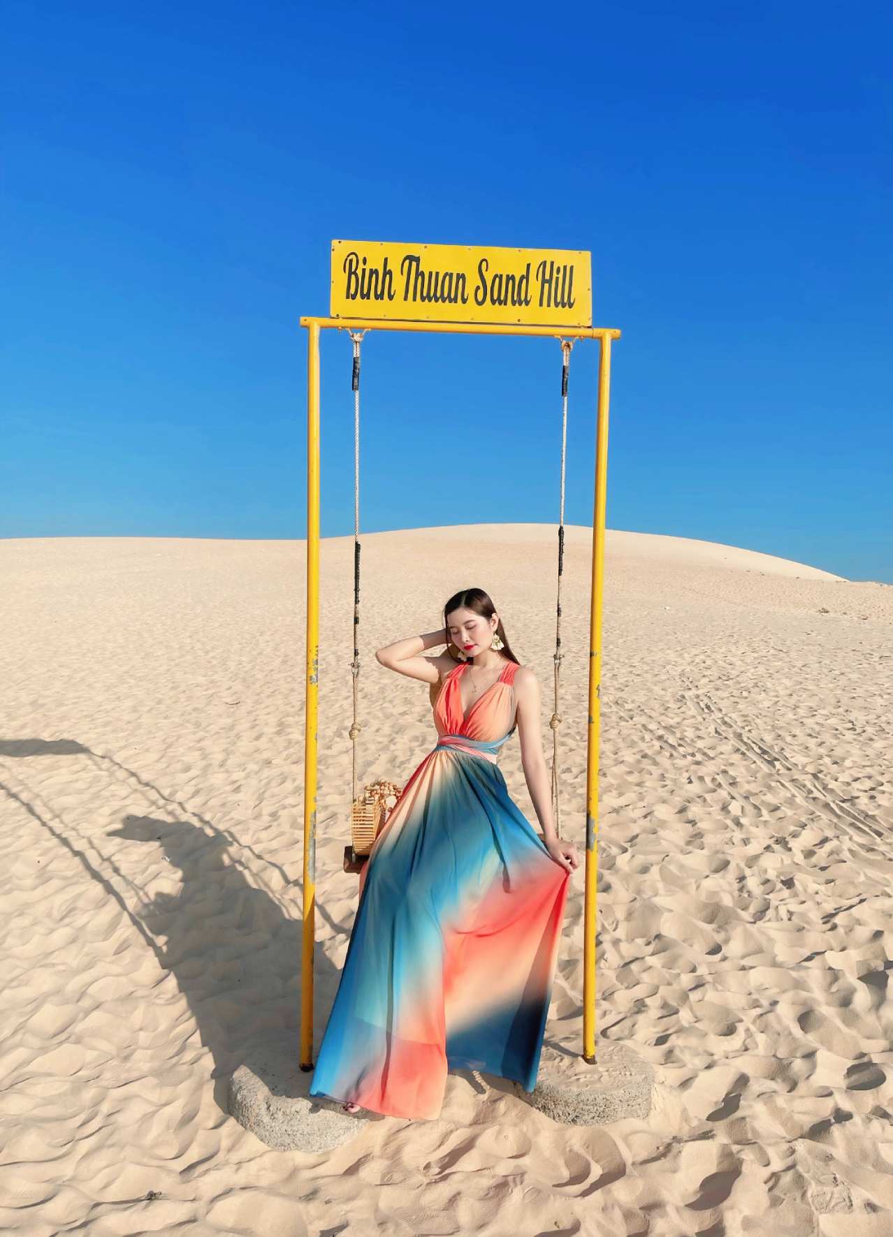 Đầm Maxi Yếm Loang Cam Vàng Chân Xanh Đen DM143 được làm bằng chất liệu voan mềm mịn và thoáng mát kết hợp với chân váy dài, rộng vừa tạo cảm giác thoải mái khi mặc vừa tạo nên hiệu ứng thướt tha, bồng bềnh mỗi khi bắt gặp những cơn gió thổi qua. Cổ áo chữ V được xẻ sâu quyến rũ cùng hai dây áo đan chéo trên tấm lưng trần, thắt quanh vòng eo và kết thúc bằng một chiếc nơ xinh xắn. Điểm nhấn của chiếc váy này có lẽ nằm ở thiết kế loang màu cùng cách phối màu đẹp mắt giữa 3 gam màu vàng, cam và xanh đen xen kẽ trên toàn bộ chiếc đầm maxi, giúp cho các nàng thu hút mọi ánh nhìn. Hãy liên hệ Bống Maxishop ngay để được tư vấn chi tiết nhé.
