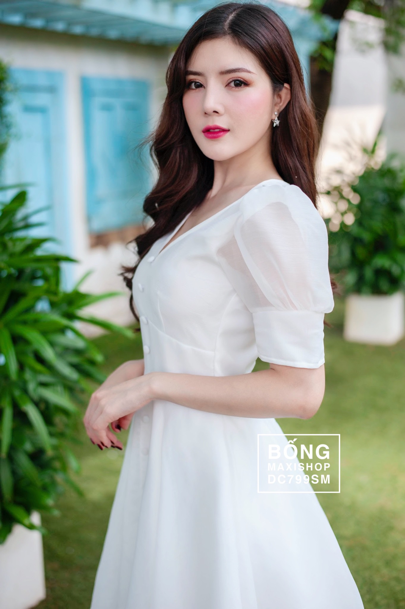 Váy Cưới Xốp Lụa Nút Lửng DC799