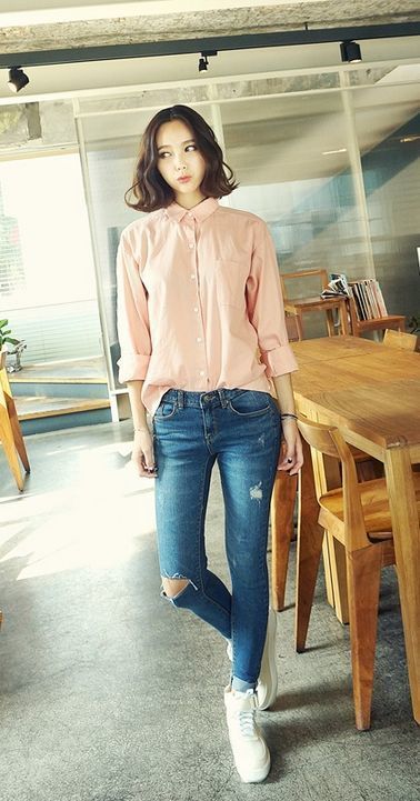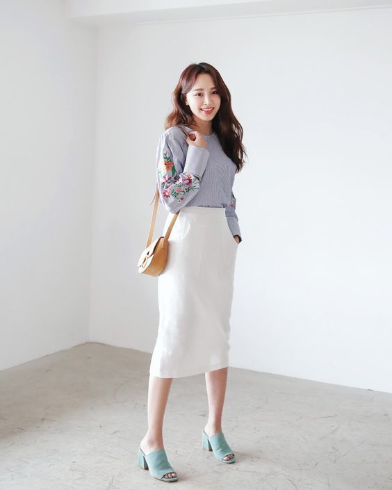 Set đồ hẳn đã quá quen thuộc nhưng nó lại chẳng bao giờ lỗi mốt, đây là bộ cứu cánh cho bạn vào những buổi sáng bận rộn. Bạn nên chọn cho mình những chiếc áo sơ mi ôm dáng với màu sắc phong phú như: sơ mi hoa, sơ mi kẻ hay sơ mi trắng để set đồ thêm bắt mắt. Đồng thời kết hợp với giày cao gót hoặc bata cá tính .