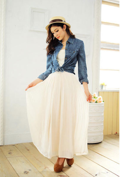 Dù bạn có là khô khan đến mấy nhưng chỉ phối với chân váy maxi với áo voan bạn trở nên nữ tính lạ thường . Đi làm bạn phối với áo sơ mi , đi chơi bạn phối với áo thun bạn vẫn cảm thấy thoải má linh hoạt nhất . Màu sắc đa dạng có thể là chân váy dáng xuông ,cũng có thể đầm xếp ly dễ thương , bạn đã có thể rất nhiều phong cách khác nhau với chân váy .