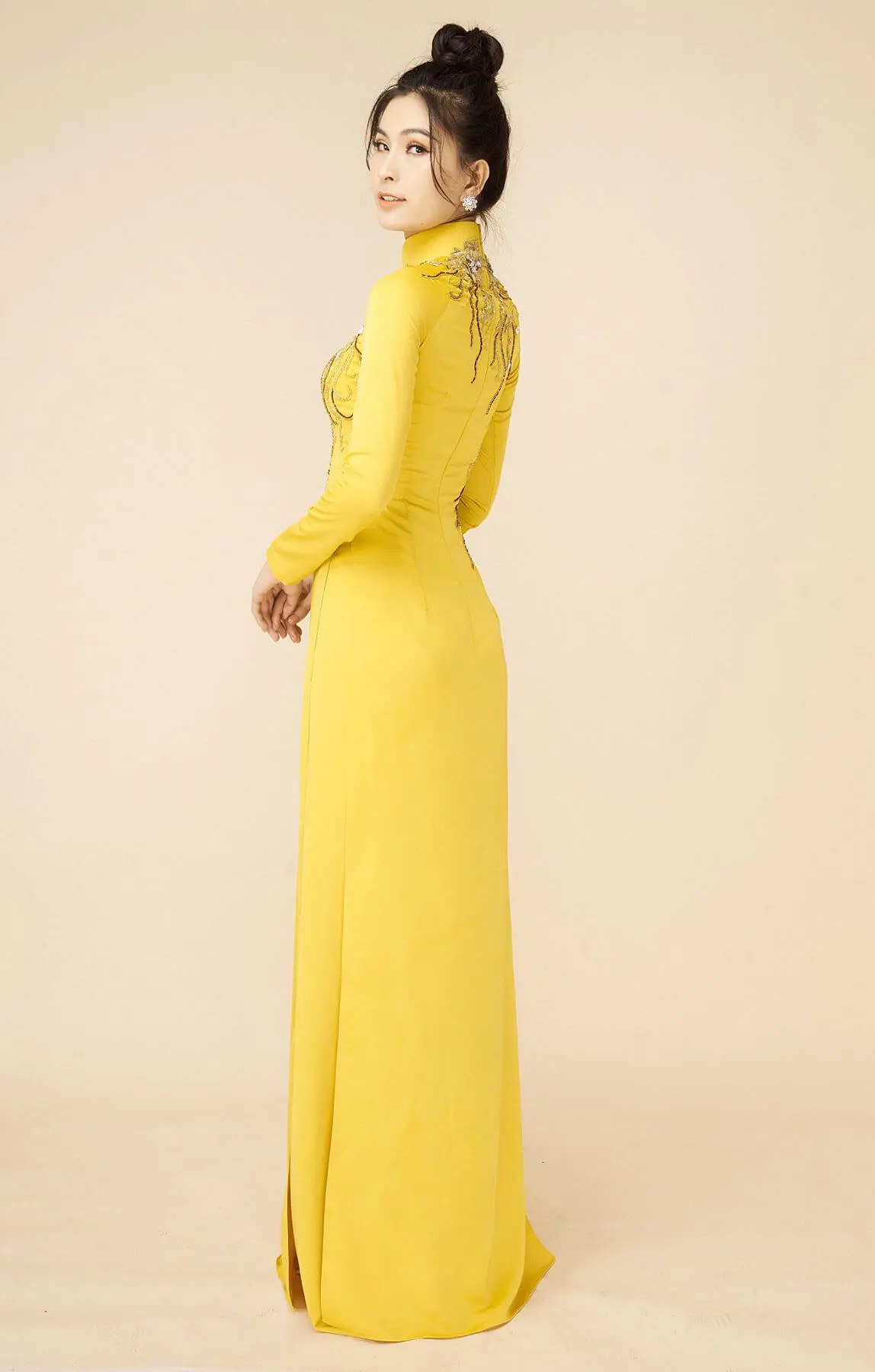 Mẫu áo dài cô dâu 2023 màu vàng khiến nàng nổi bật và tươi thắm trong ngày vui