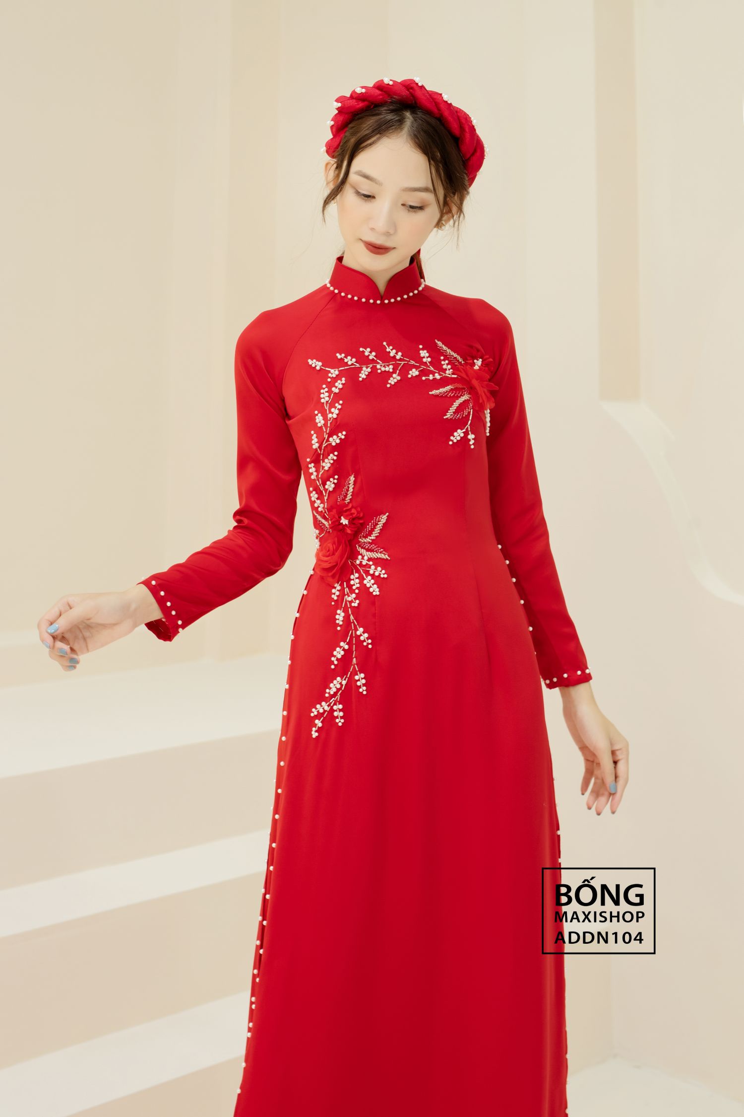Mua ngay: Áo dài cô dâu lụa 2 da đỏ kết hoa cành ngọc ADDN104