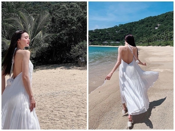 Ninh Dương Lan Ngọc diện đầm maxi dài hở lưng trắng