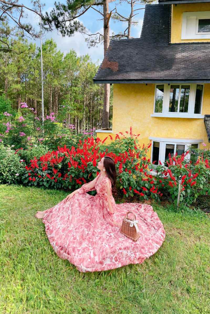 Mua ngay: Đầm Maxi Yếm Tầng Hoa Ngực Hồng DM328