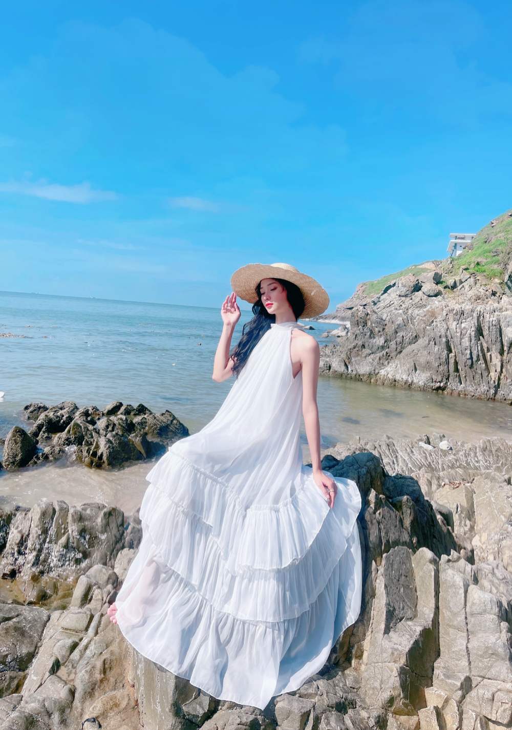 Mua ngay: Đầm Maxi Yếm Tầng Trắng Ánh Tằm DT808