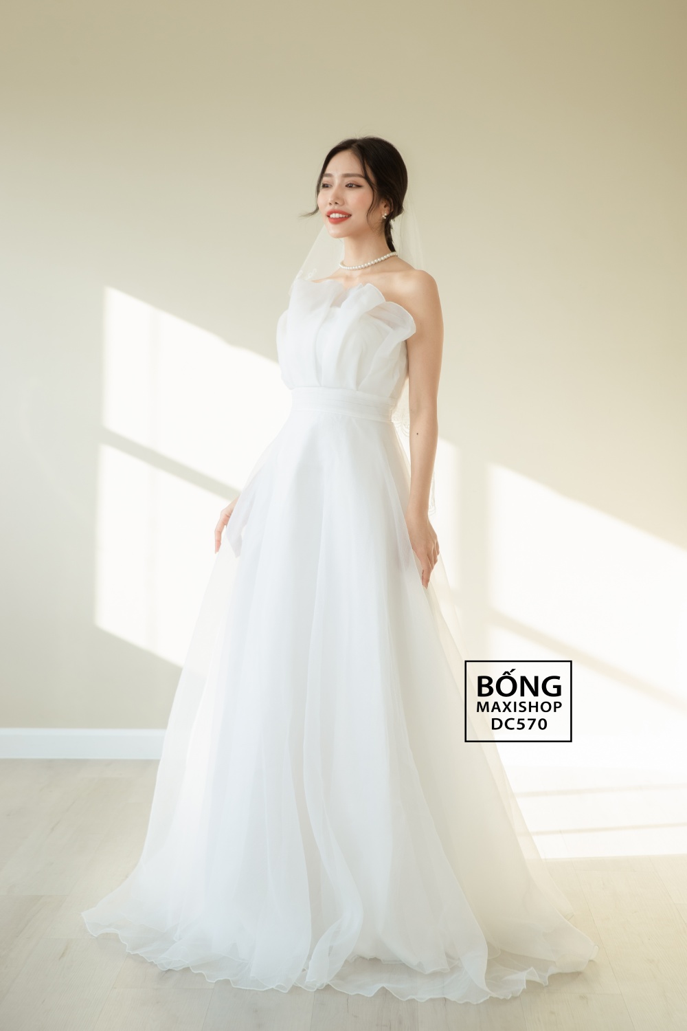 Váy cưới màu trắng xốp cúp xếp li DC570T