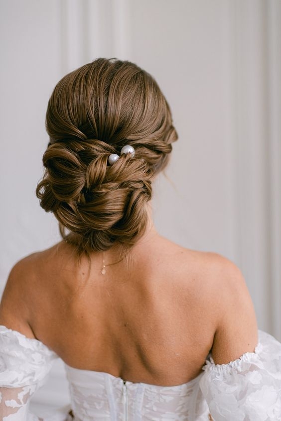 Kiểu tóc tuyệt đẹp cho nàng dâu diện váy cưới trễ vai