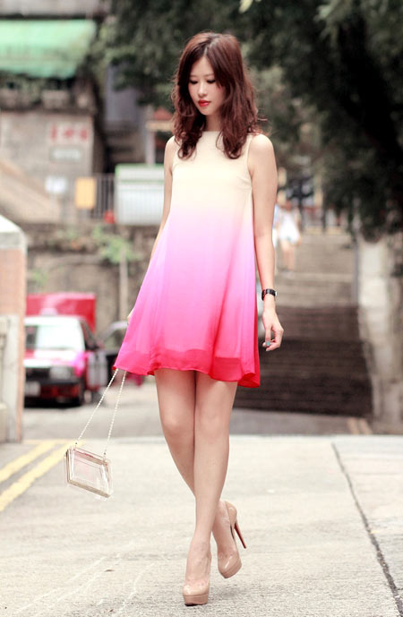 Vải voan nhẹ nhàng, dáng xòe nhẹ và ngắn trên đầu gối, chiếc váy tưởng chừng phức tạp nóng nảy nhưng mang lại hiệu quả rất cao . Chiếc váy Ombre tôn được chiều cao, che được vòng 2,3 không như ý , đơn giản nhưng kết hợp với phụ kiện như dây chuyền hay túi nhỏ , trông cực kỳ sang chảnh nhé.