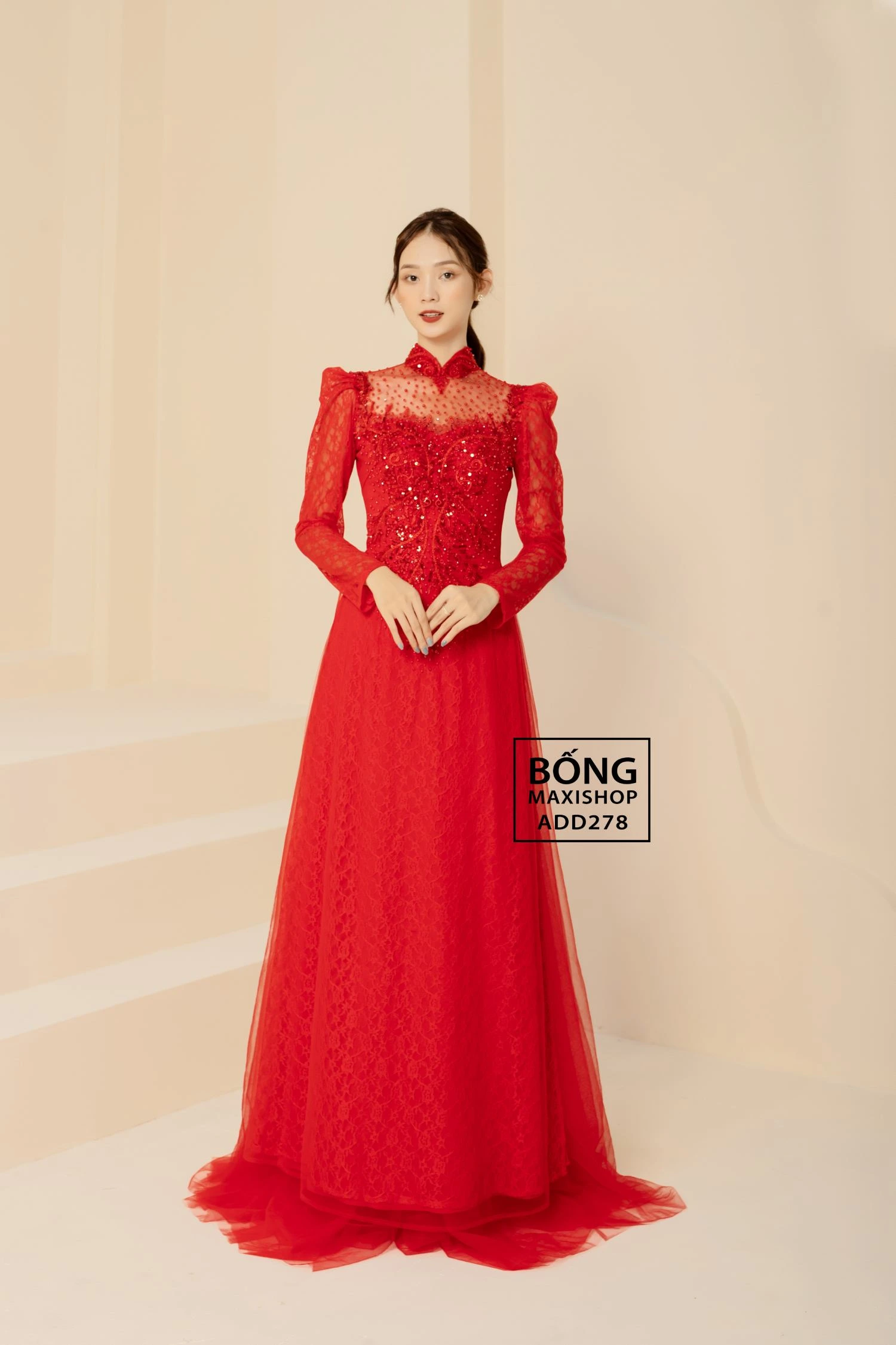 Mua ngay: Áo dài cô dâu ren cườm đỏ lấp lánh ADD278