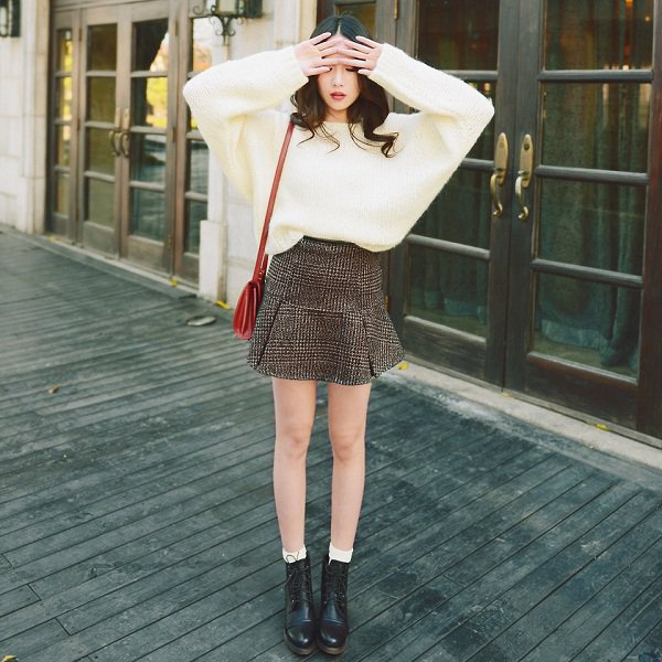 Áo hoodie, áo sweater là hai mẫu trang phục không thể thiết trong set đồ kết hợp cùng các mẫu chân váy siêu ngắn. Để hoàn thiện set đồ mang phong cách năng động nên chọn thêm bốt da cổ thấp.
