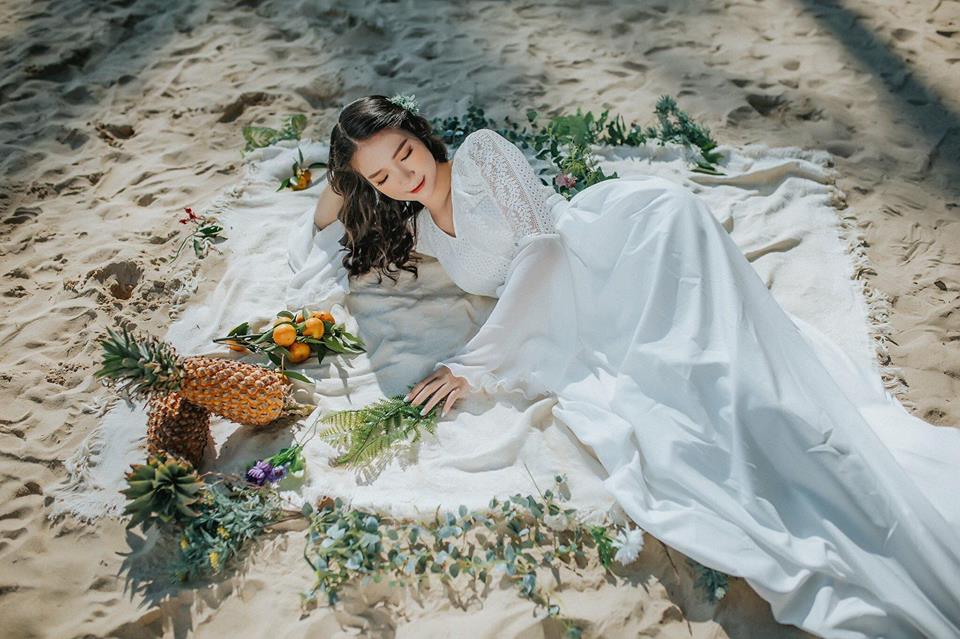 Chiếc đầm maxi chụp hình cưới cũng được cô dâu lựa chọn kiểu đơn giản nhất nhằm không dễ dàng nhìn thấy khuyết điể, không quá chật vật với chiếc đầm phồng to truyền thống , nhẹ nhàng và sâu sắc hơn .