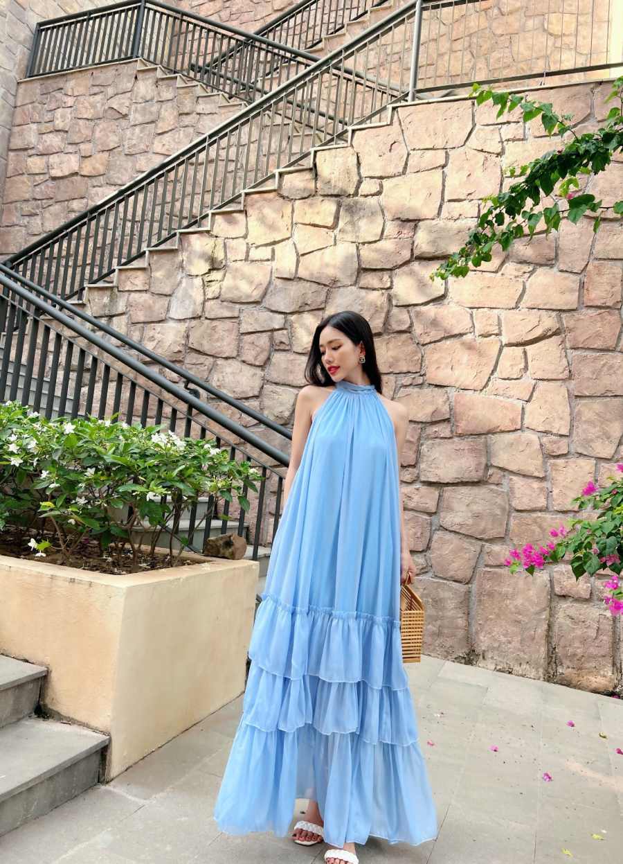 Mua ngay: Đầm Maxi Yếm Tầng Xanh Ánh Tằm DM808X