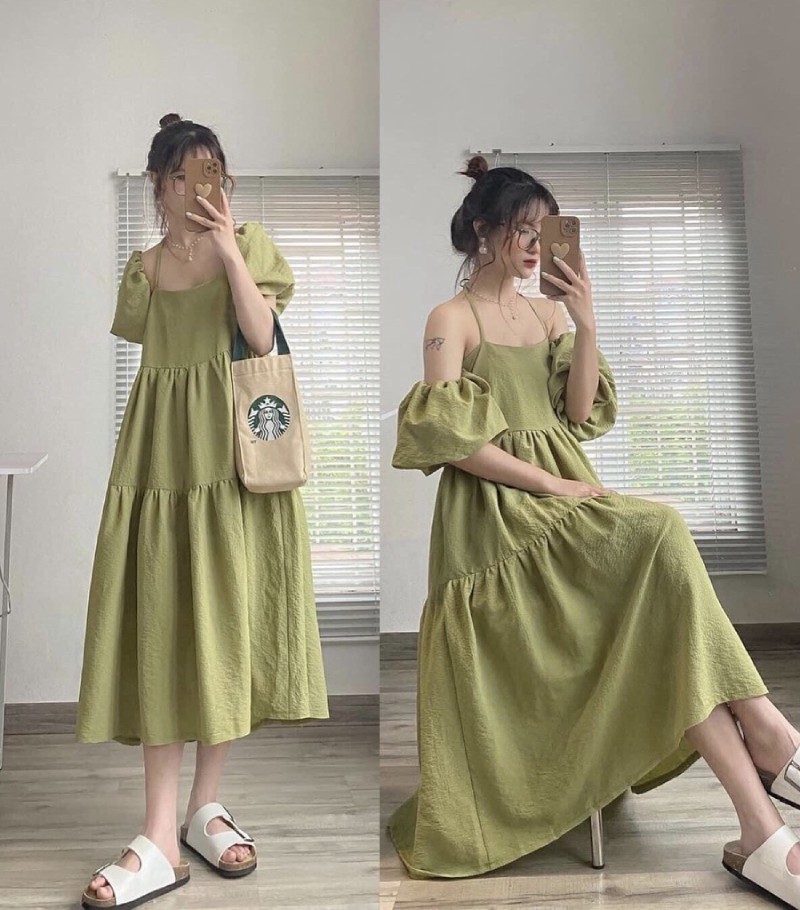 Váy maxi 2023 kiểu dáng babydoll nổi bật với sự trẻ trung và nữ tính, đã trở thành trào lưu thịnh hành được nhiều quý cô săn đón. Đặc trưng của mẫu váy này chính là thiết kế rộng rãi, không kén dáng người mặc. Bên cạnh đó, phần tay áo bồng trễ vai và cổ áo vuông góp phần tạo nên một item thời trang dễ thương nhưng không kém phần gợi cảm. Đầm babydoll thường sử dụng màu trơn trên toàn bộ thiết kế để tạo sự đồng điệu hoàn hảo, tôn lên nét duyên dáng và cá tính của người mặc.