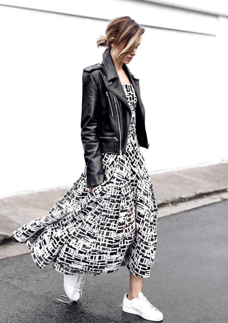 Đầm maxi 2023 phối giày sneaker