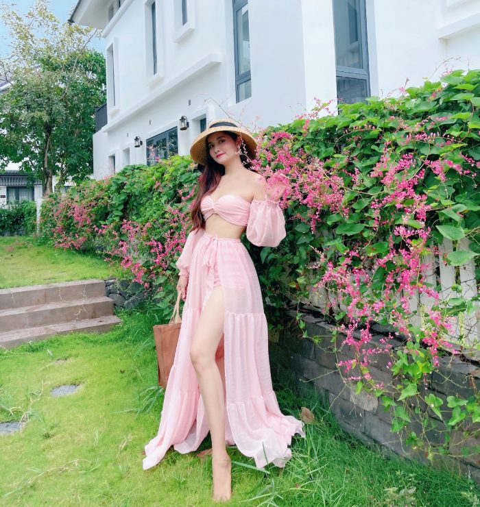 Mua ngay: Đầm Maxi Set Bikini Hồng Phấn 3 Món DM806
