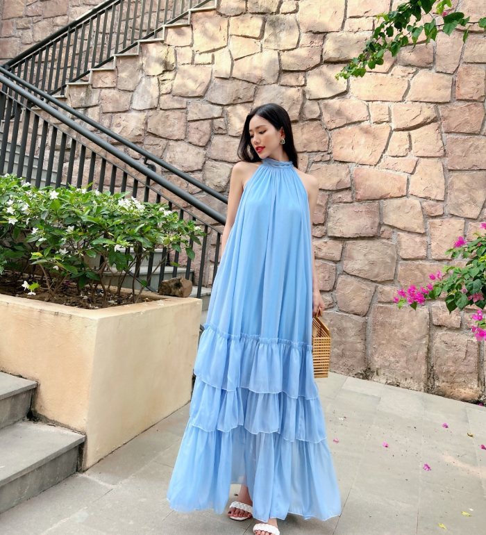 Mua ngay: Đầm Maxi Yếm Tầng Xanh Ánh Tằm DM808X